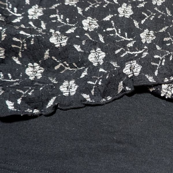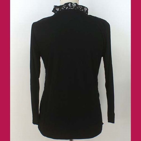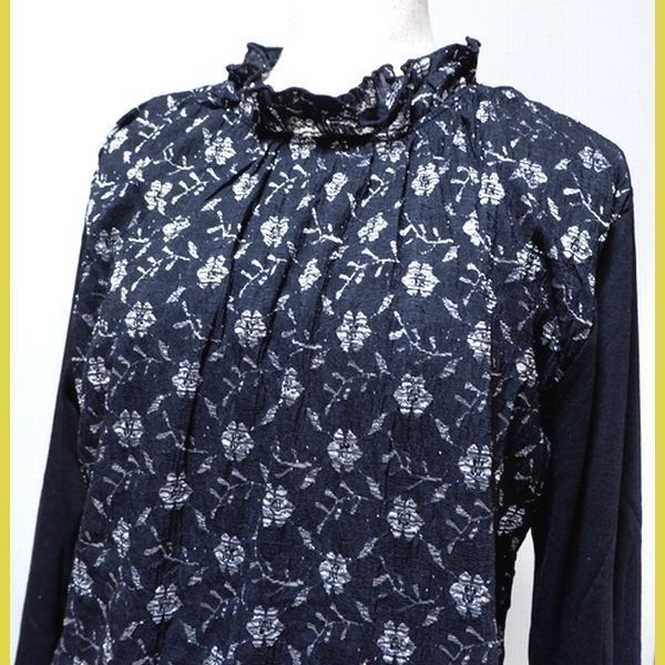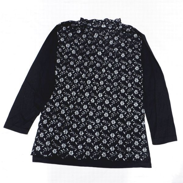Last 3L フリル襟ラメ刺繍 ジャケットインに 長袖Tシャツ 黒 大きいサイズ