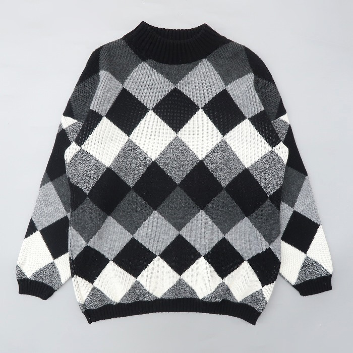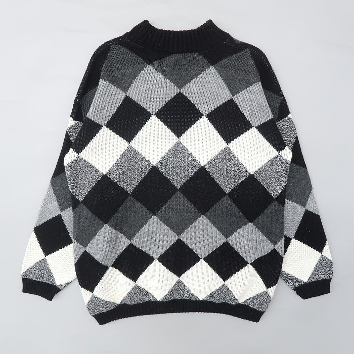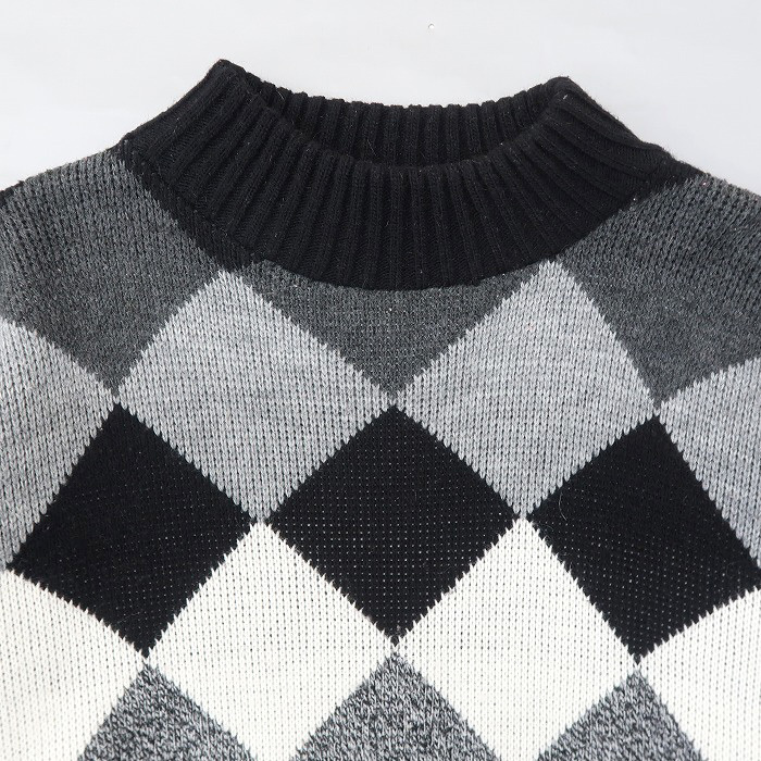 古着 ニット セーター チェック モックネック ブラック グレー サイズ表記:- gd75112