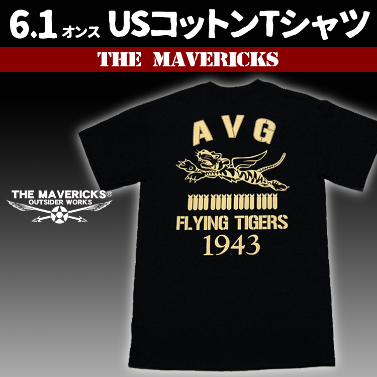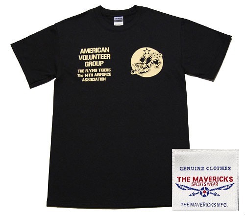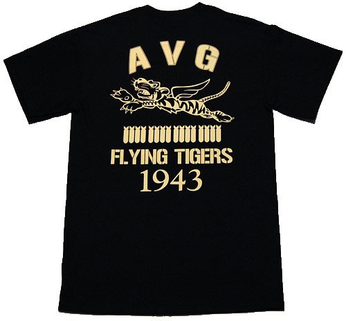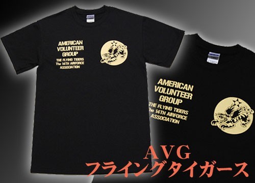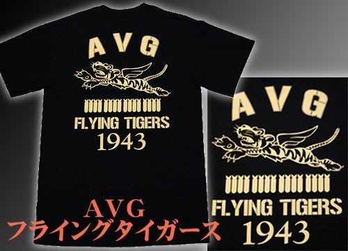 アメリカ陸軍航空隊時代・WWII初期に活躍したアメリカ義勇軍(AVG:AmericanVolunteerGroup)。その象徴「フライングタイガース」をモチーフにしたTシャツです。