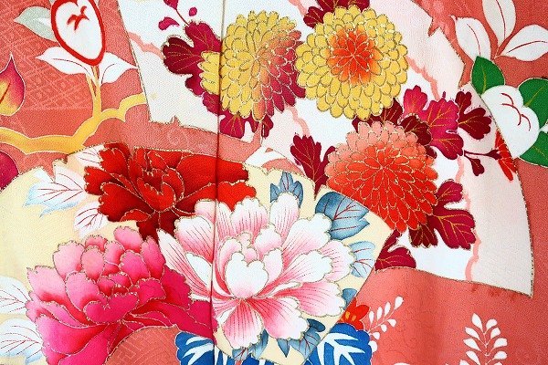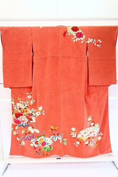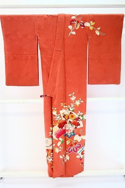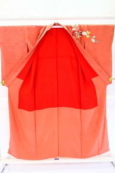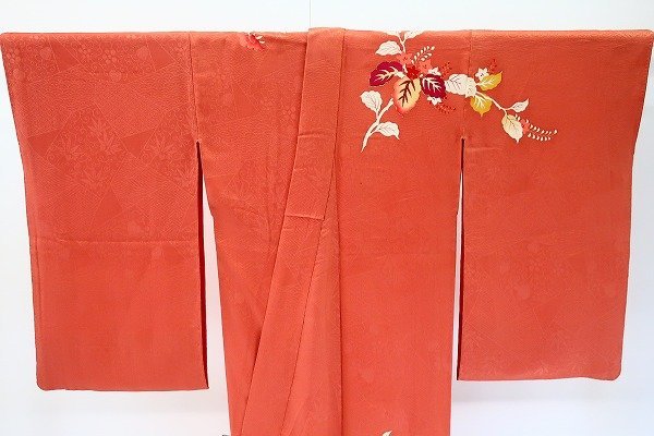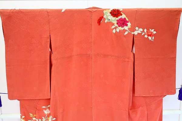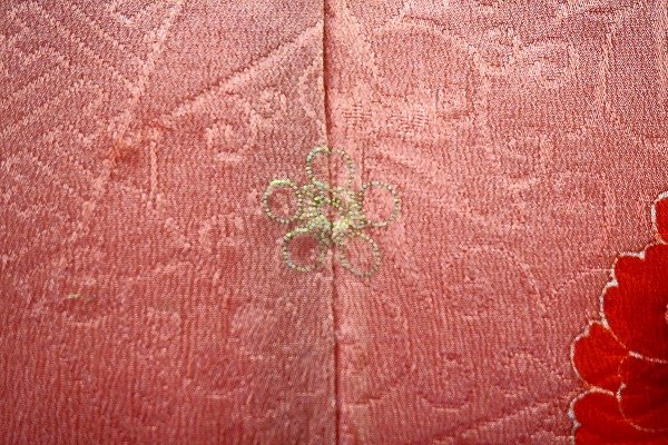 アンティークの訪問着です。 渋いピンク色の絹地に、菊や橘が描かれています。 ※刺繍の一ツ紋が入っています。 ※バチ衿です。 ※アンティーク品としては良い状態ですが、アンティーク品にご理解ある方のみご入札をお願いします。 |