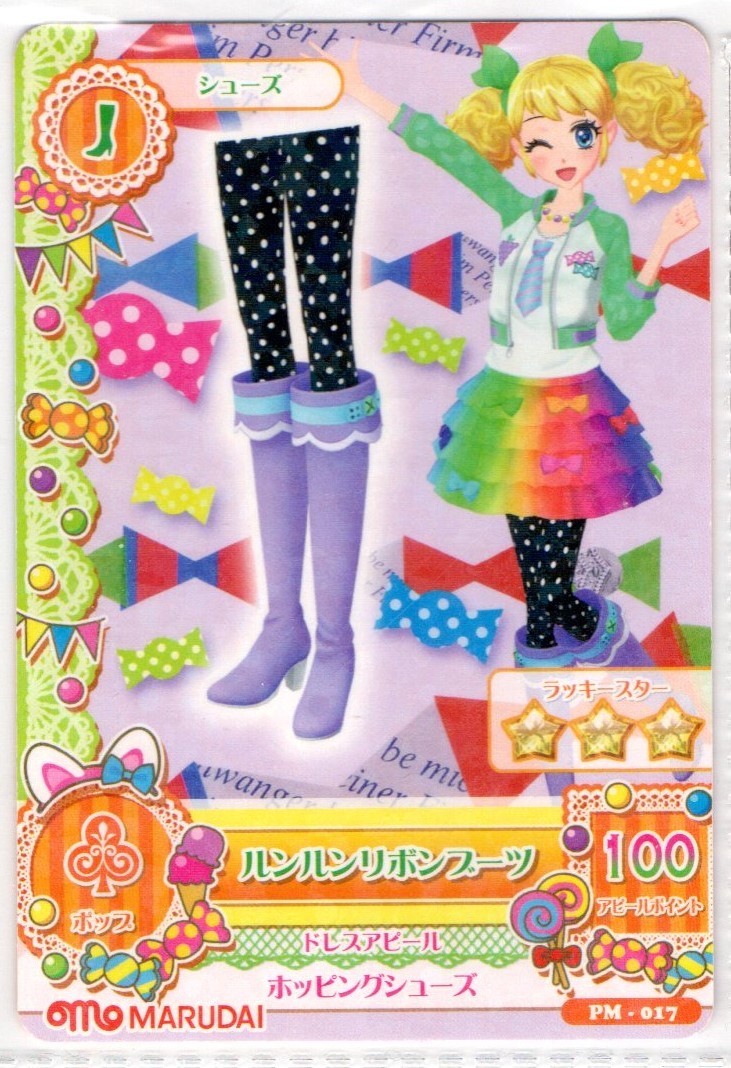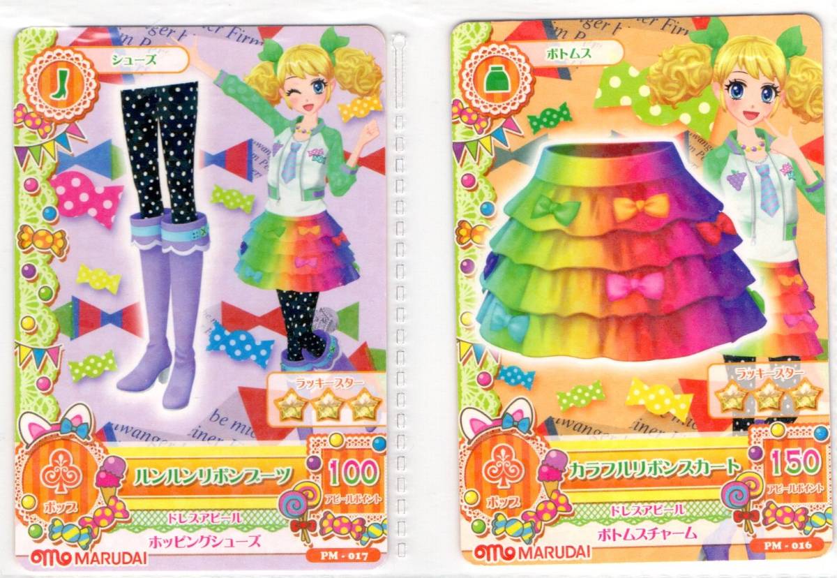 アイカツ!アイカツカード 冴草きい カラフルリボンスカート+ルンルンリボンブーツ 2点まとめて マルダイ非売品 PM-016,PM-017