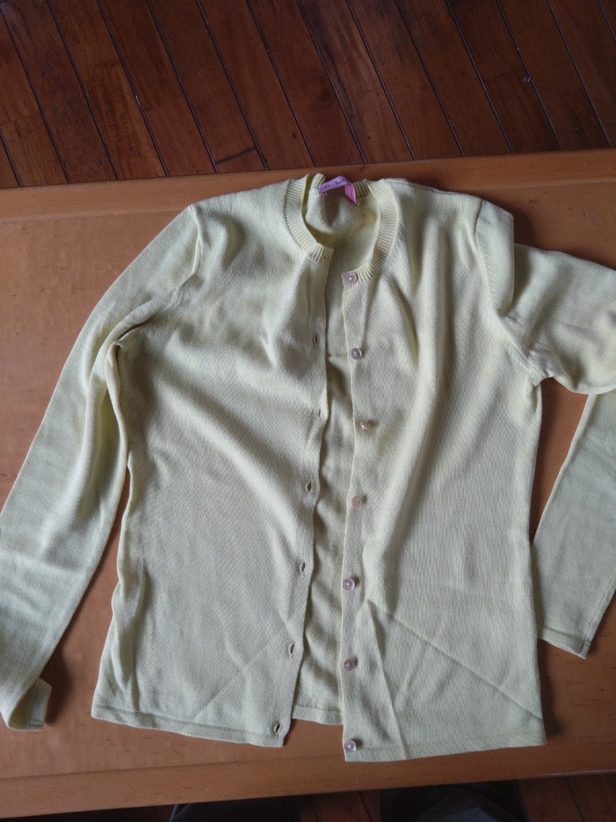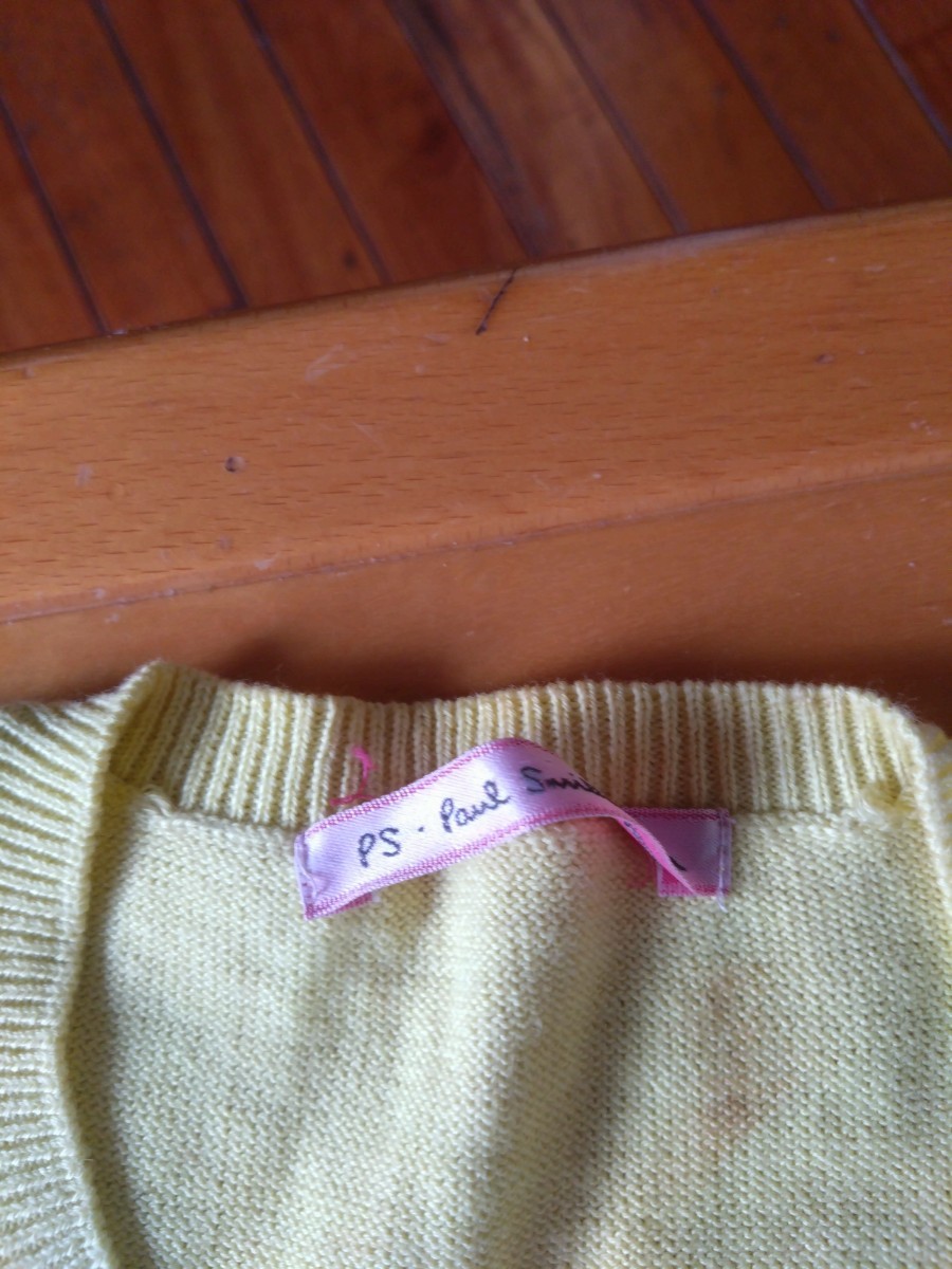 ポールスミスウィメンの綿カーディガンです。サイズ表記はMで身長158~164バスト79~87です。画像ではわかりづらいですが、薄い黄色です。