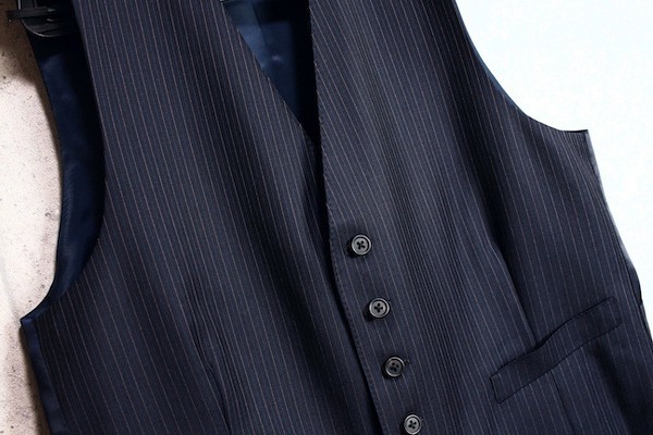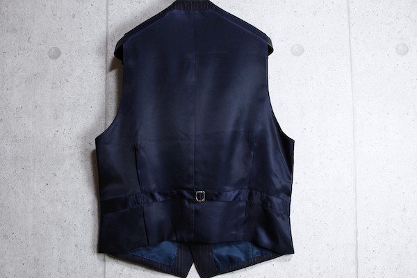 程よいツヤ感があり、しなやかなウール100%のゼニア生地を使用した綺麗なピンストライプの組み合わせの上品なジレです。