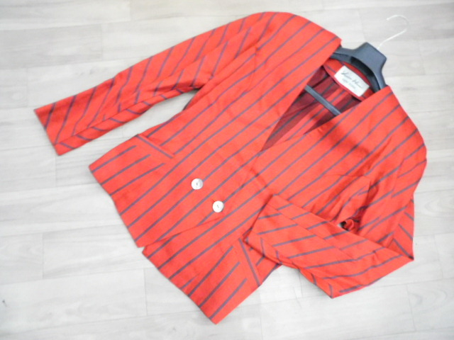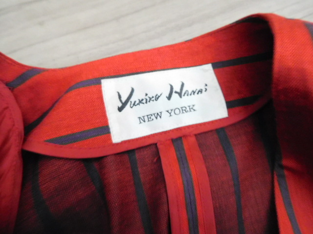 T91 ユキコハナイ YUKIKO HANAI 美品 麻混 ストライプ柄ジャケット サイズ 9 即決:ヴィンテージ | |