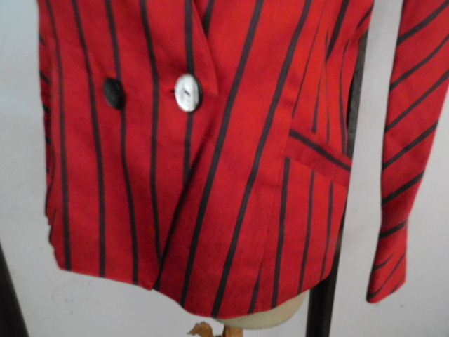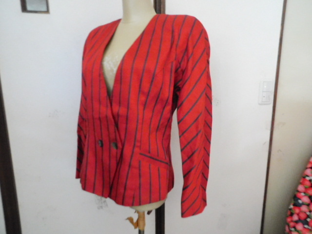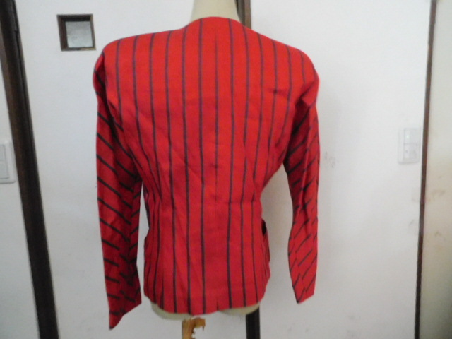 商品 | ★発送完了時に、評価を入れさせていただいております。*評価なし*の方は、事前にお知らせくださいね。 ★かんたん決済のシステムが変わりました。かんたん決済されましても、ヤフーの査定にお時間がかかります。当日営業時間内に発送できない場合がありますのでご了承ください。 ★ご注意欄・発送方法の説明文★を必ずお読みいただいた上でオークションに参加して下さいね。購入意思のない方のご入札・落札は、固くお断りいたします。 ■商品説明■ (*注*★土・日・祝日定休日・盆休み・年末年始★お休みの為、平日PM12時からPM5時の対応になりますのでご了承ください。・佐川急便宅急便のみ。) (株)花井。ヴィンテージ。お色は、朱赤系。着用回数の少ないお品です。ストライプ織り地のお品です。裏地なし。肩パット付き。替えボタン付き。 |