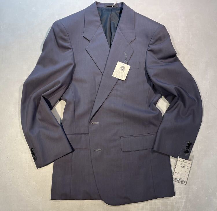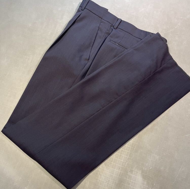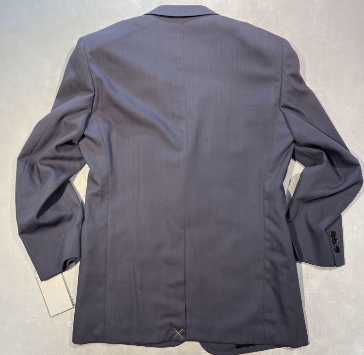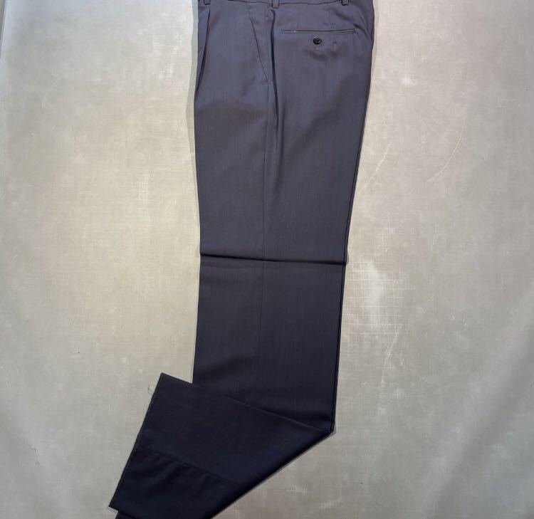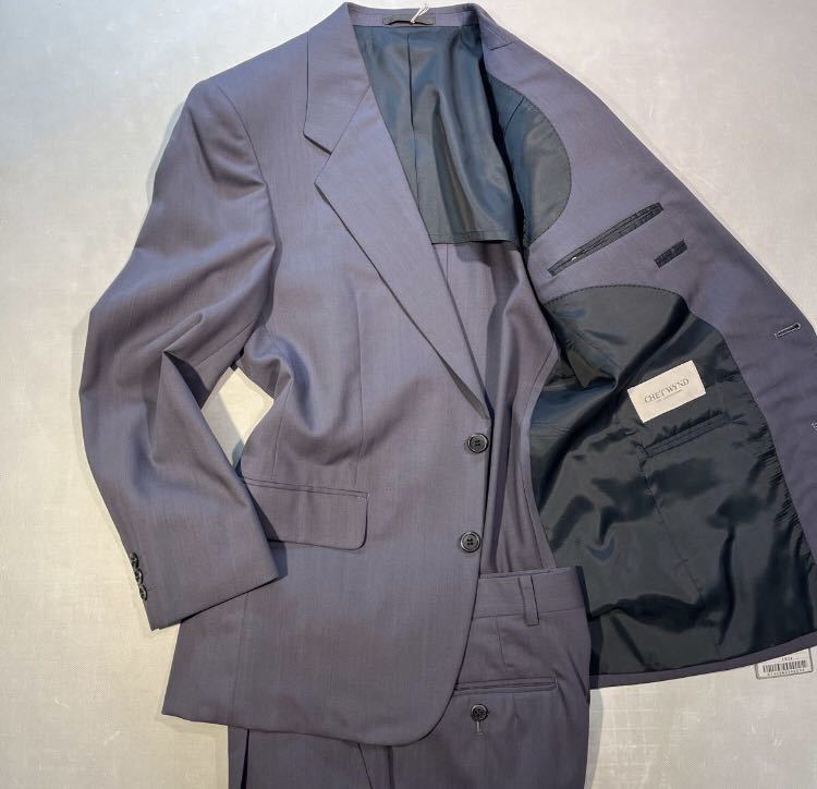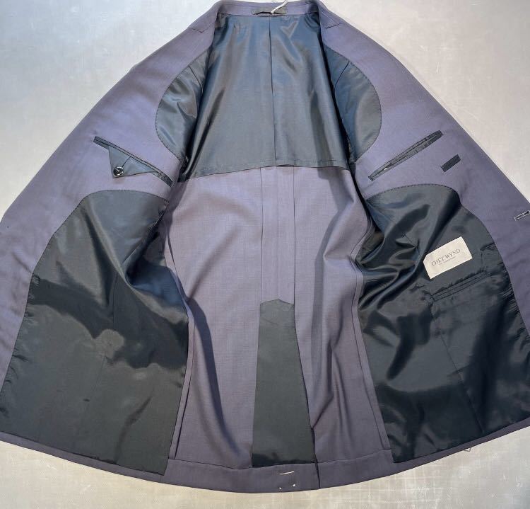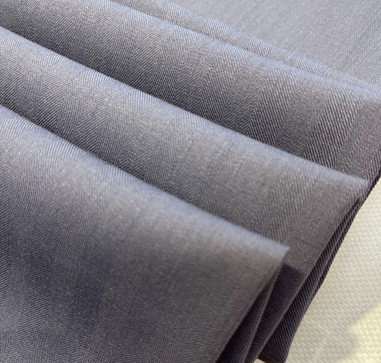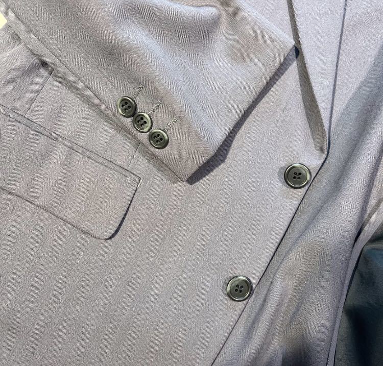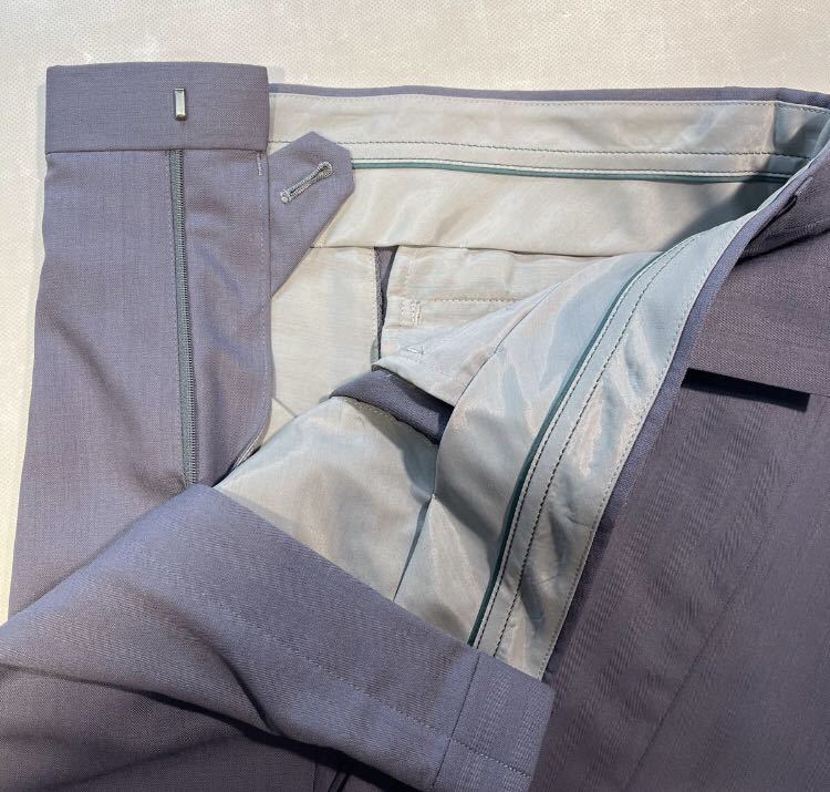 お色は人気のパープル系。艶のあるとてもキレイな色目に仕上がっています。これからの季節はジャケットのみスラックスのみでコーディネートしても良いと思います。また近年はインナーも進化している為、この商品同様動きやすい薄手のスーツを一年通して着用される方が増えています。生地はふわさらですが、とても丈夫で大事に着用頂ければ軽く10年は持ちます。この機会に是非チェックしてみてください。