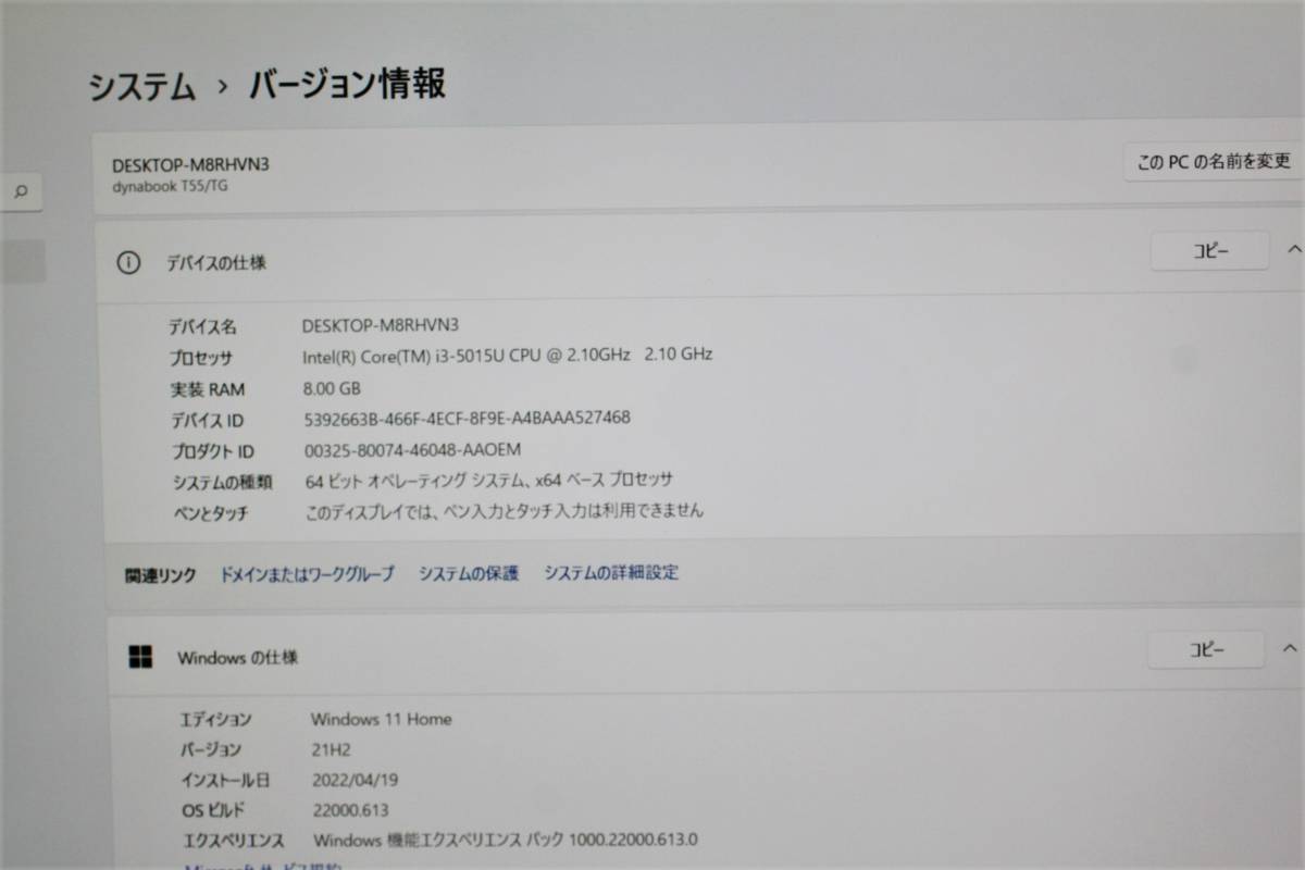 dynabook/PT55TPG-BWA/Win11/Intel Core i3-5015U/SSD256GB/メモリ8GB/ノートPC ⑥
