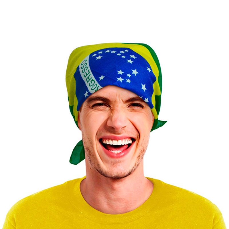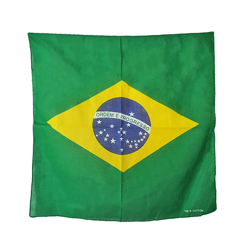 頭、首、手足首、バッグなどに巻けるブラジル国旗柄のバンダナです!