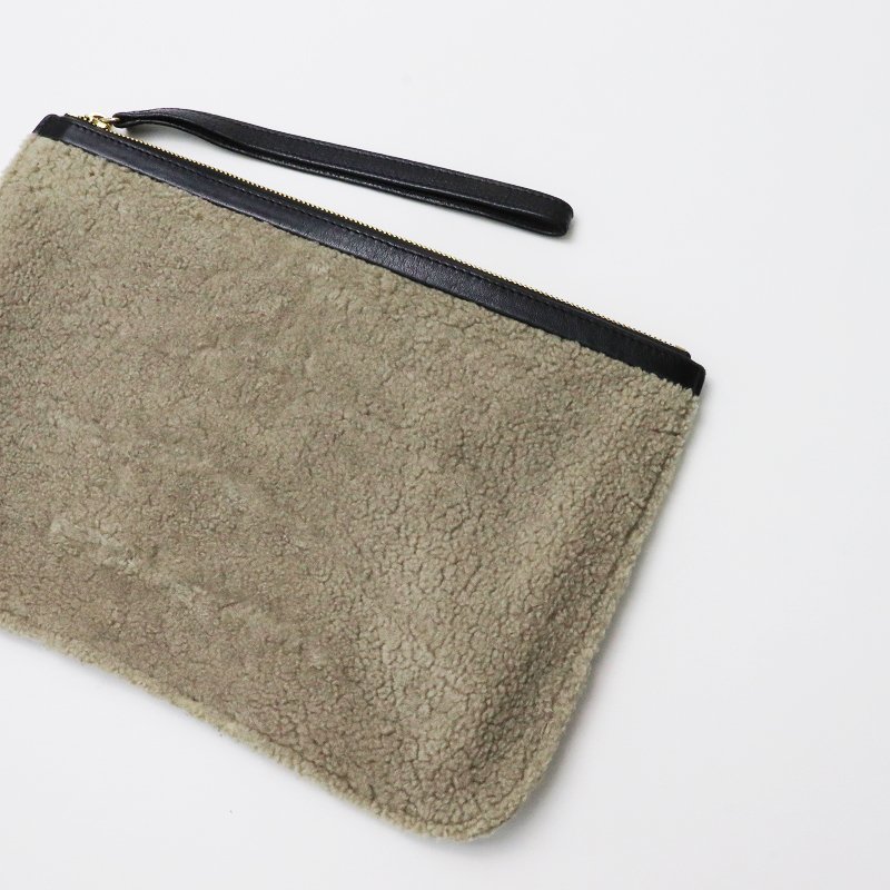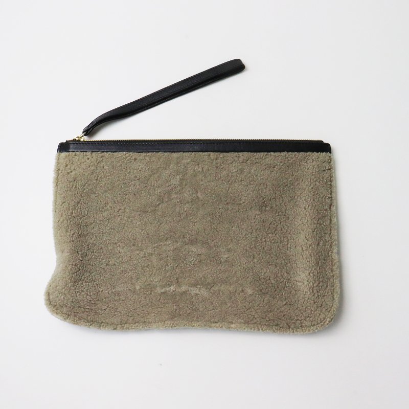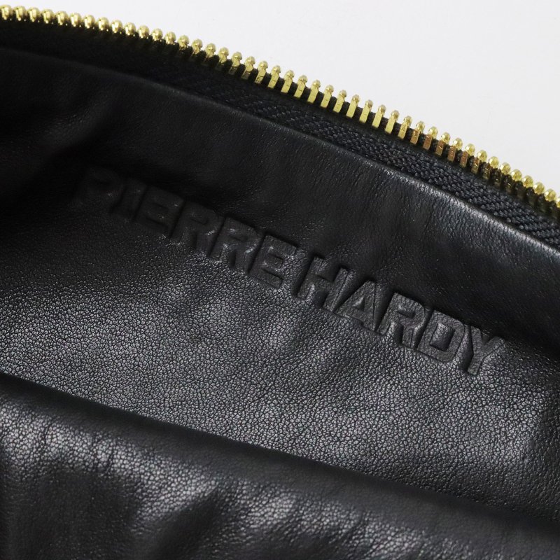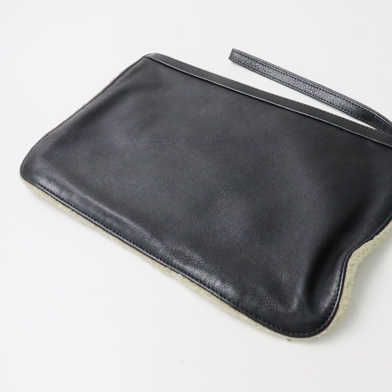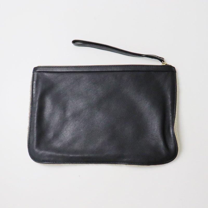 美品 ピエールアルディ PIERRE HARDY ムートンレザークラッチバッグ/グレー ブラック ジップ【2400013611510】