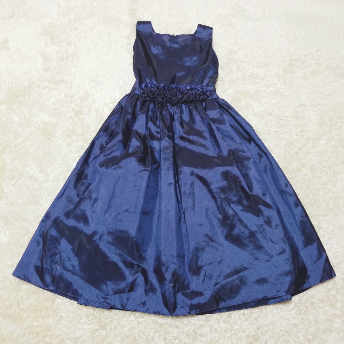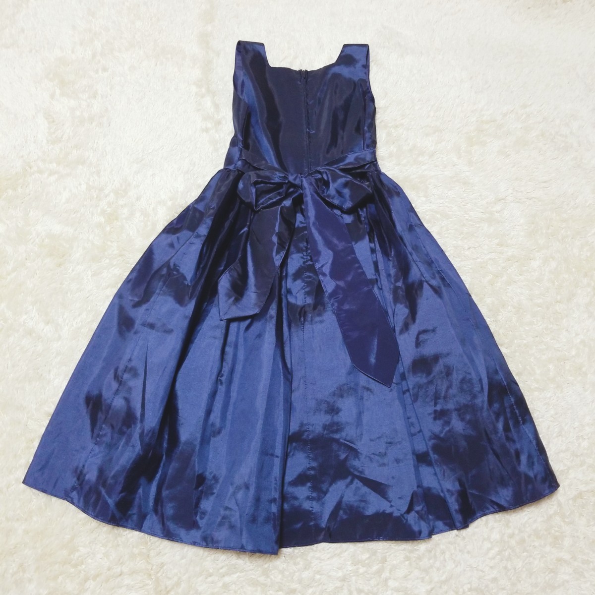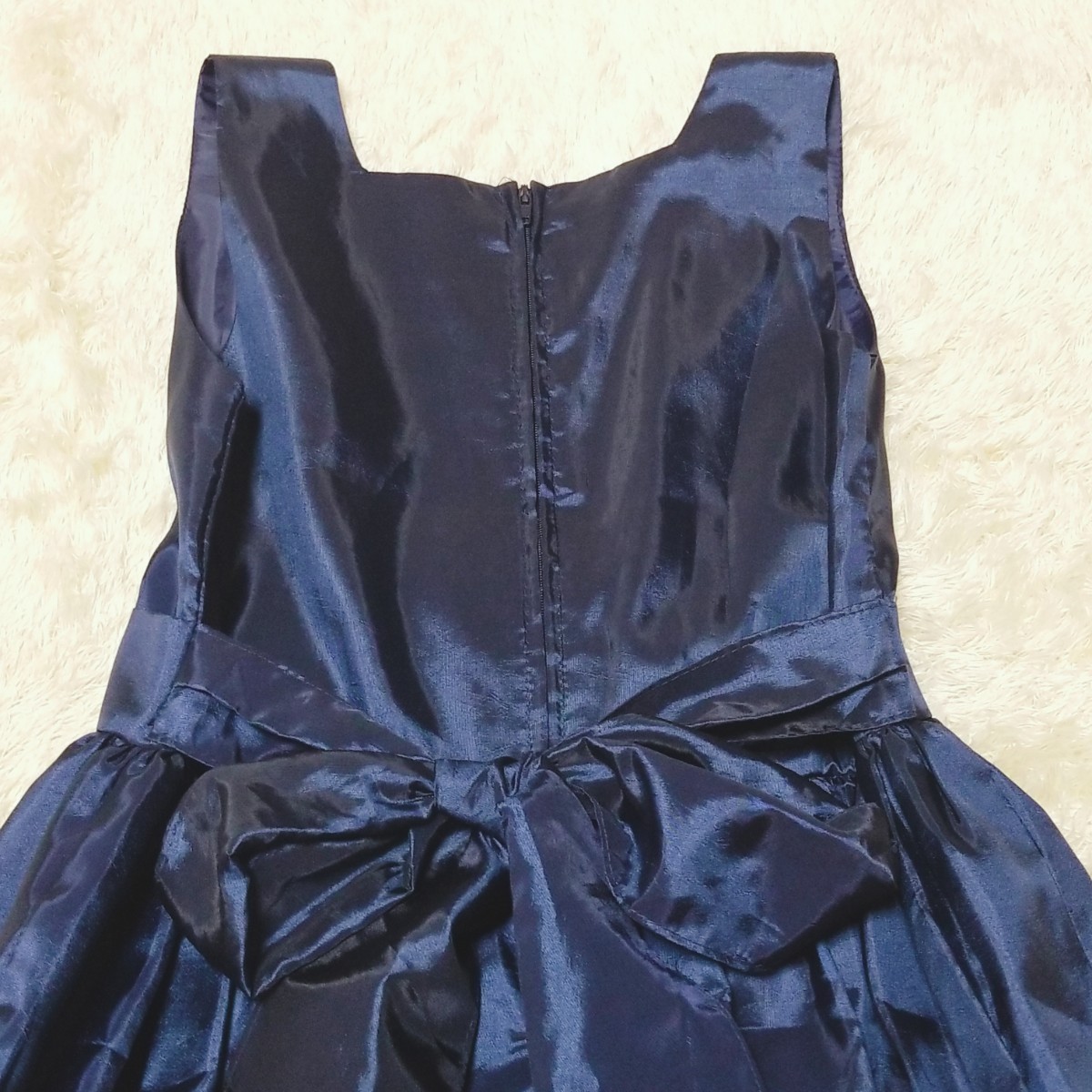 Y992 美品★キッズ ジュニア 子供用 ドレス ワンピース ノースリーブ リボン付 150cm相当 ネイビー イベント パーティー 発表会 衣装 舞台