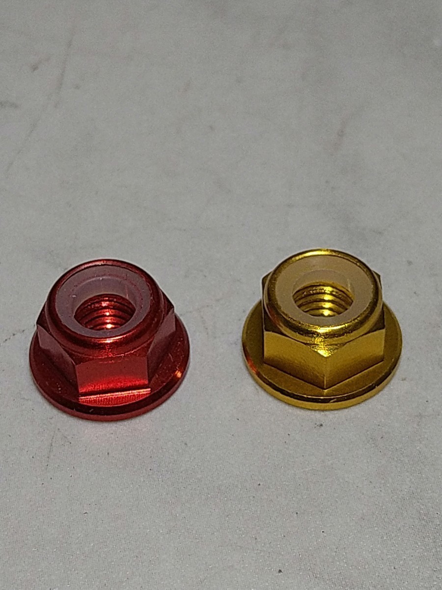 ニックス等に アルミフランジナイロンロックナットM5/×8個 レッド、ゴールド