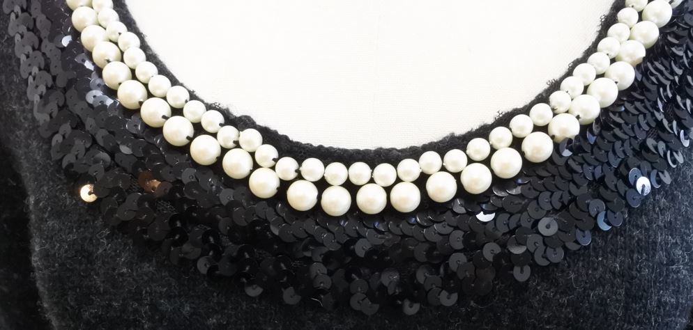 | CRYSTAL FLAP ワンピース ニット 長袖 グレー 38 スパンコール フェイクパール パフ袖 js a201h1103 | |||