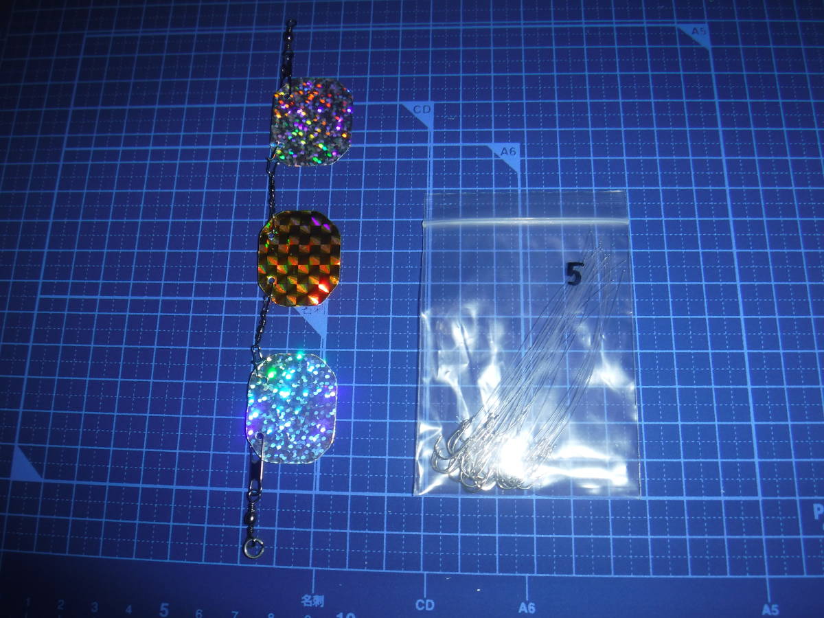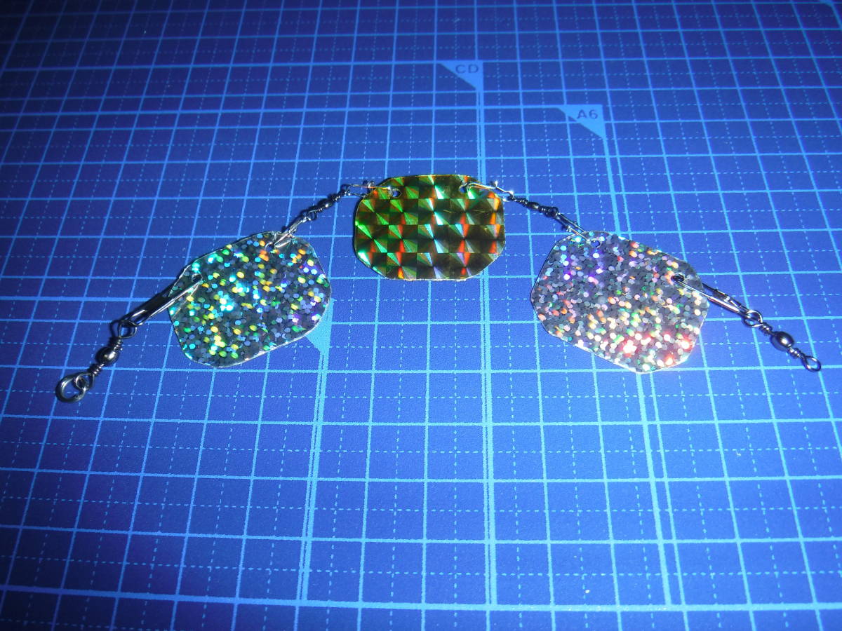 全面ギラギラの両面ホロでシルバー2枚ゴールド1枚のMIXです。集魚力アップの3連で高いアピール力です。