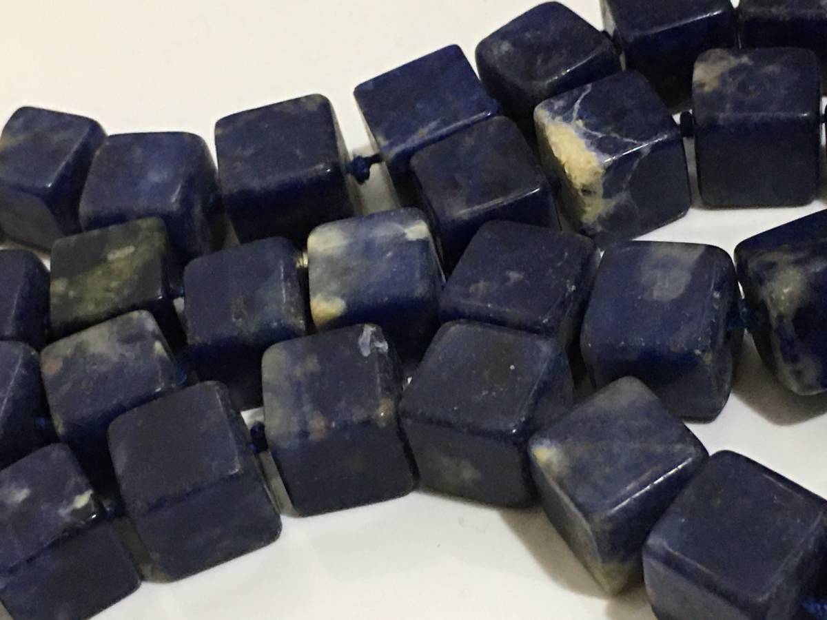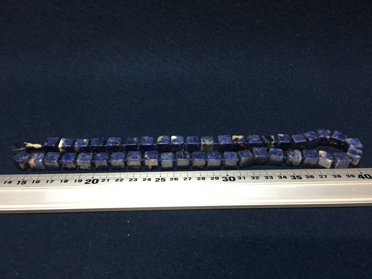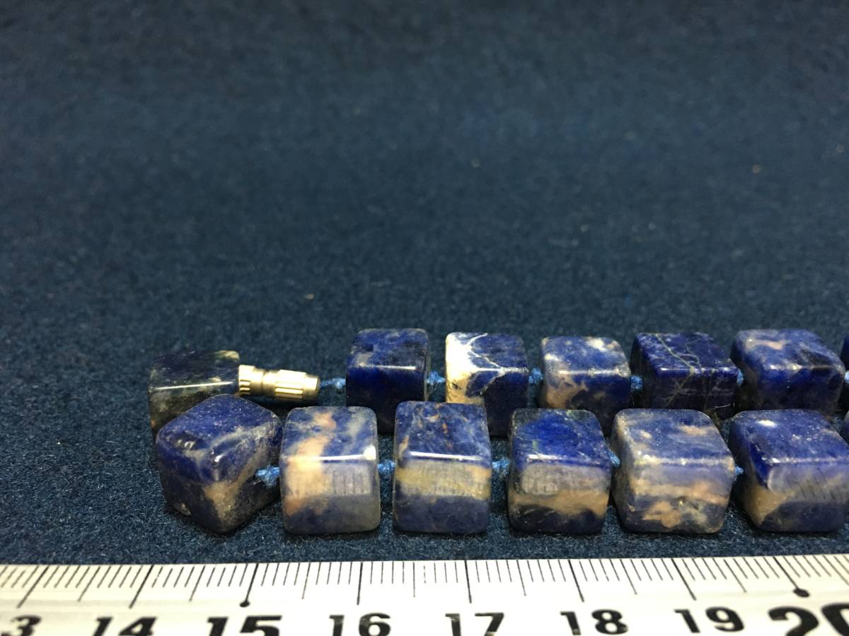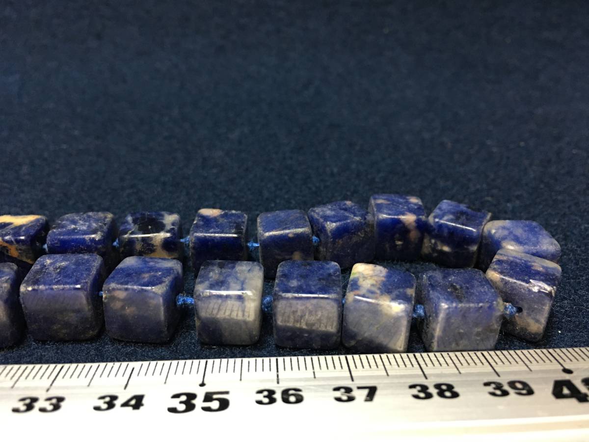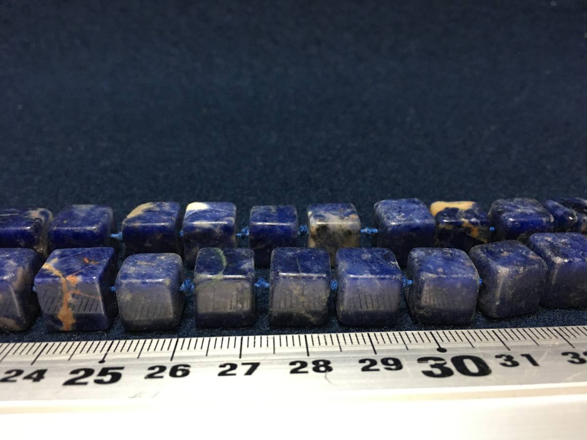 天然石 加  四角形の 10㎜ キューブ型で 瑠璃 濃い目で 綺麗目の感じ 全長54cm位 100g。