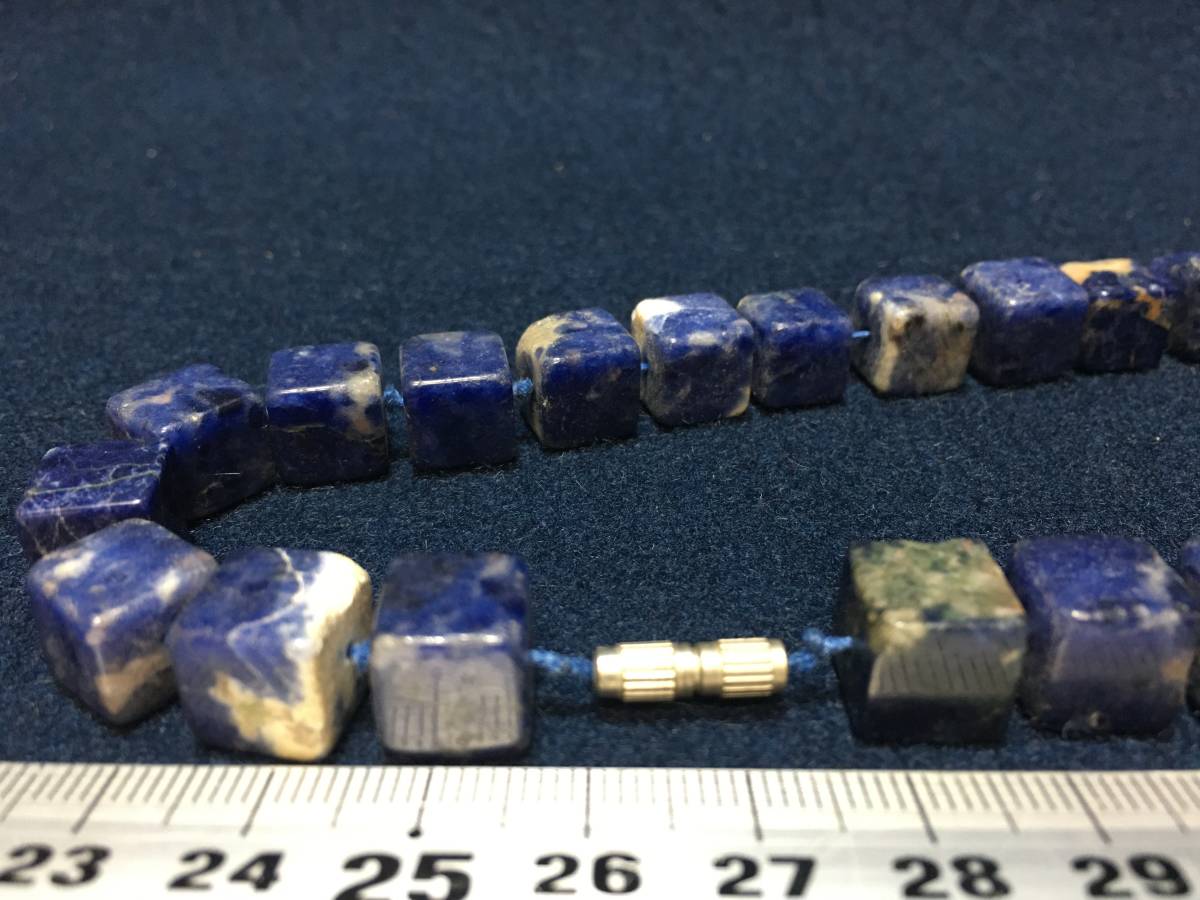 ラピスラズリ ネックレス 天然石 加工 四角形 10㎜ キューブ 瑠璃 青紺 濃い目 綺麗目 装飾品 全長54cm位 100g プリンセス 珍品 珍しい形