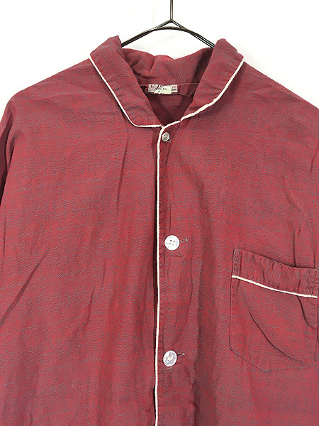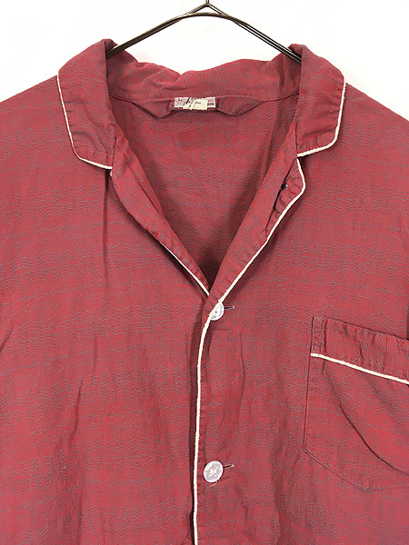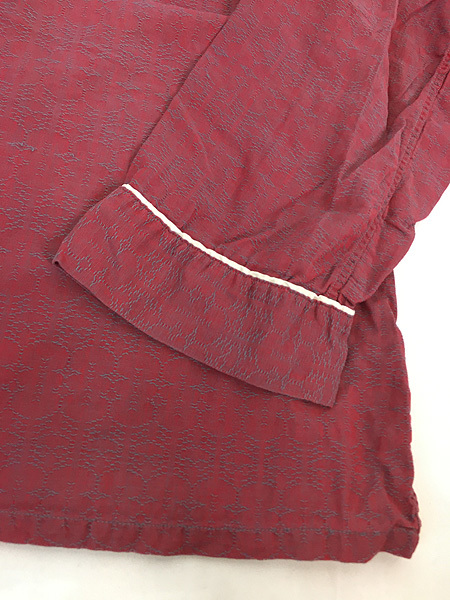 若干光沢のあるジャガード織コットン素材・襟芯なし・サイド巻き縫い。