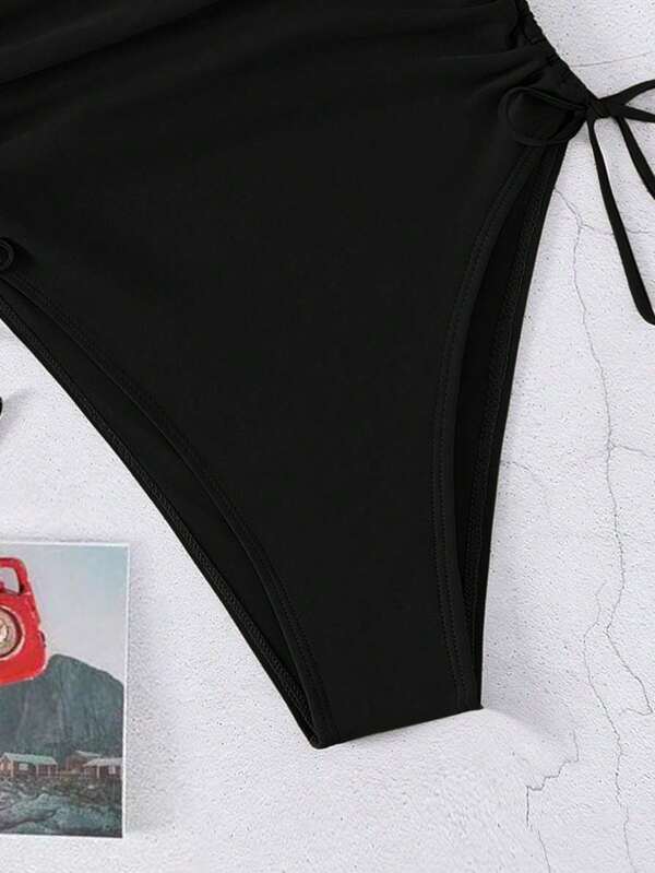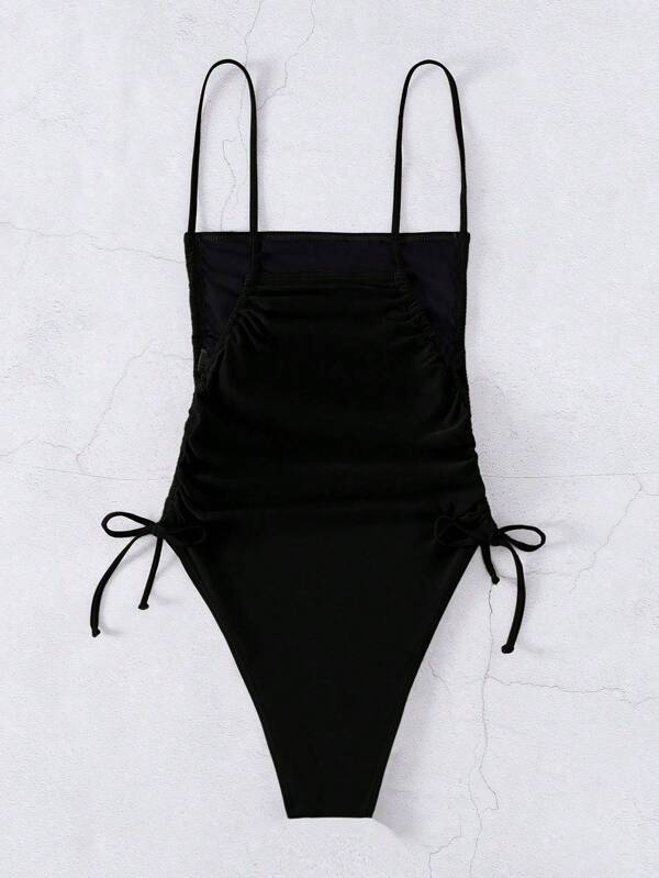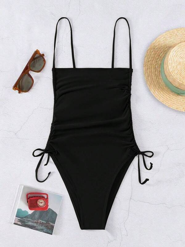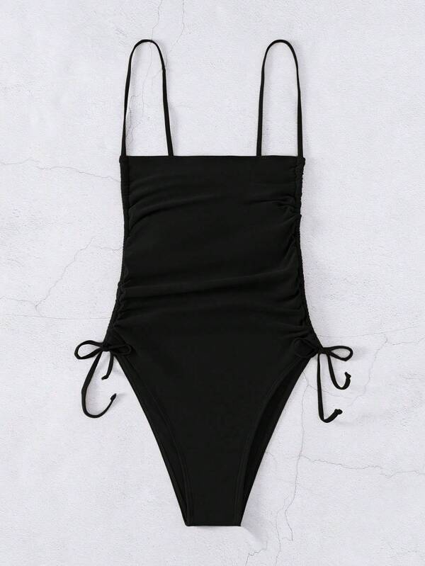 レディース 水着 ワンピース サイドリボンドローストリング ワンピース水着