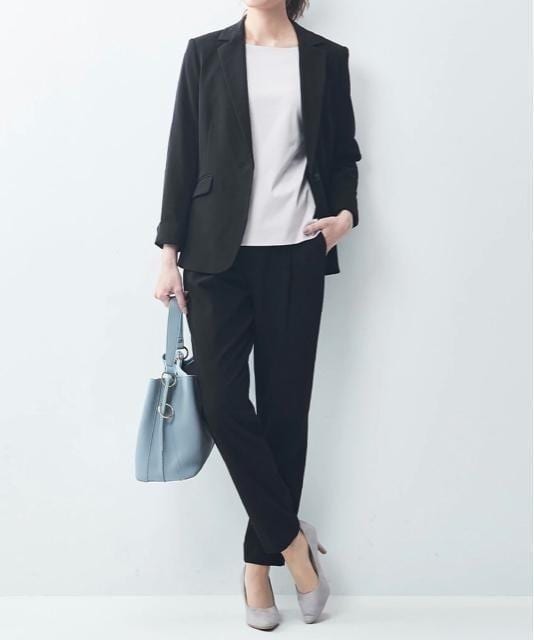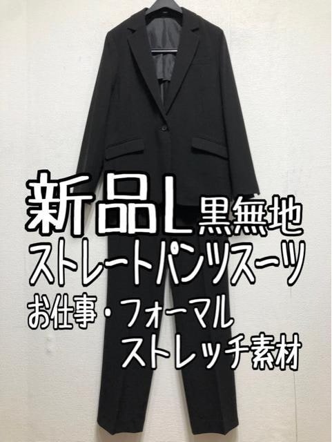 新品☆Lストレートパンツスーツ黒無地ストレッチお仕事フォーマル☆u913