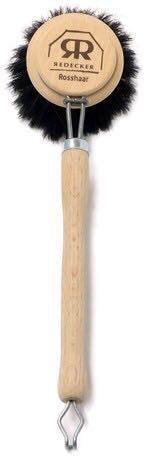 ウォッシングブラシ(食器用)は馬毛を用いた黒い毛のブラシは柔らかいのでキズをつけずに汚れを落としてくれます。食器は勿論、特殊加工された鍋等にもご使用いただけます。持ち手はウッド素材で手になじみます。また、持ち手とブラシ部分を取り外して使用することもできるので、気になる汚れは持ち手を外してタワシのように使用してください。