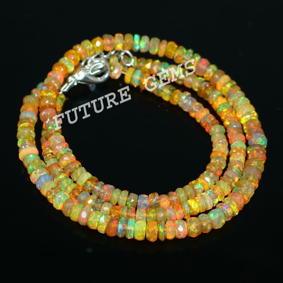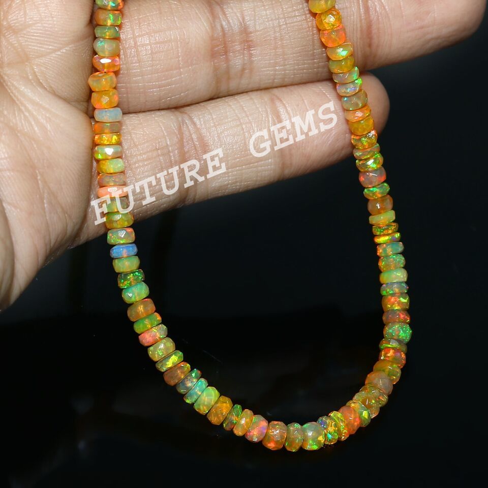オパール ネックレス お届けに2週間くらいかかります。オパールビーズファセットオパールビーズ天然エチオピアオパールジュエリー