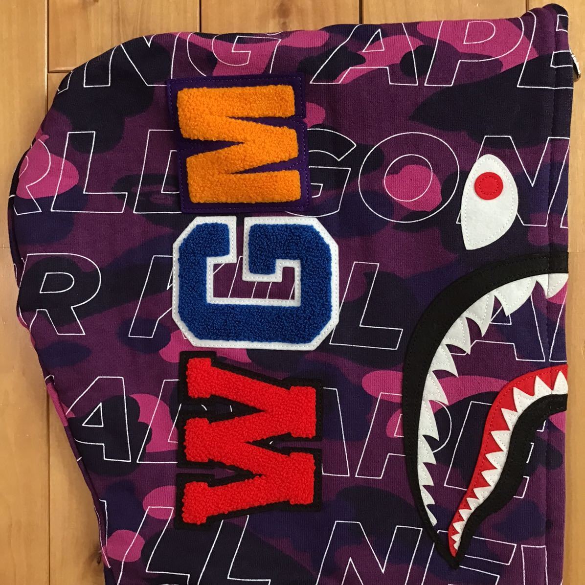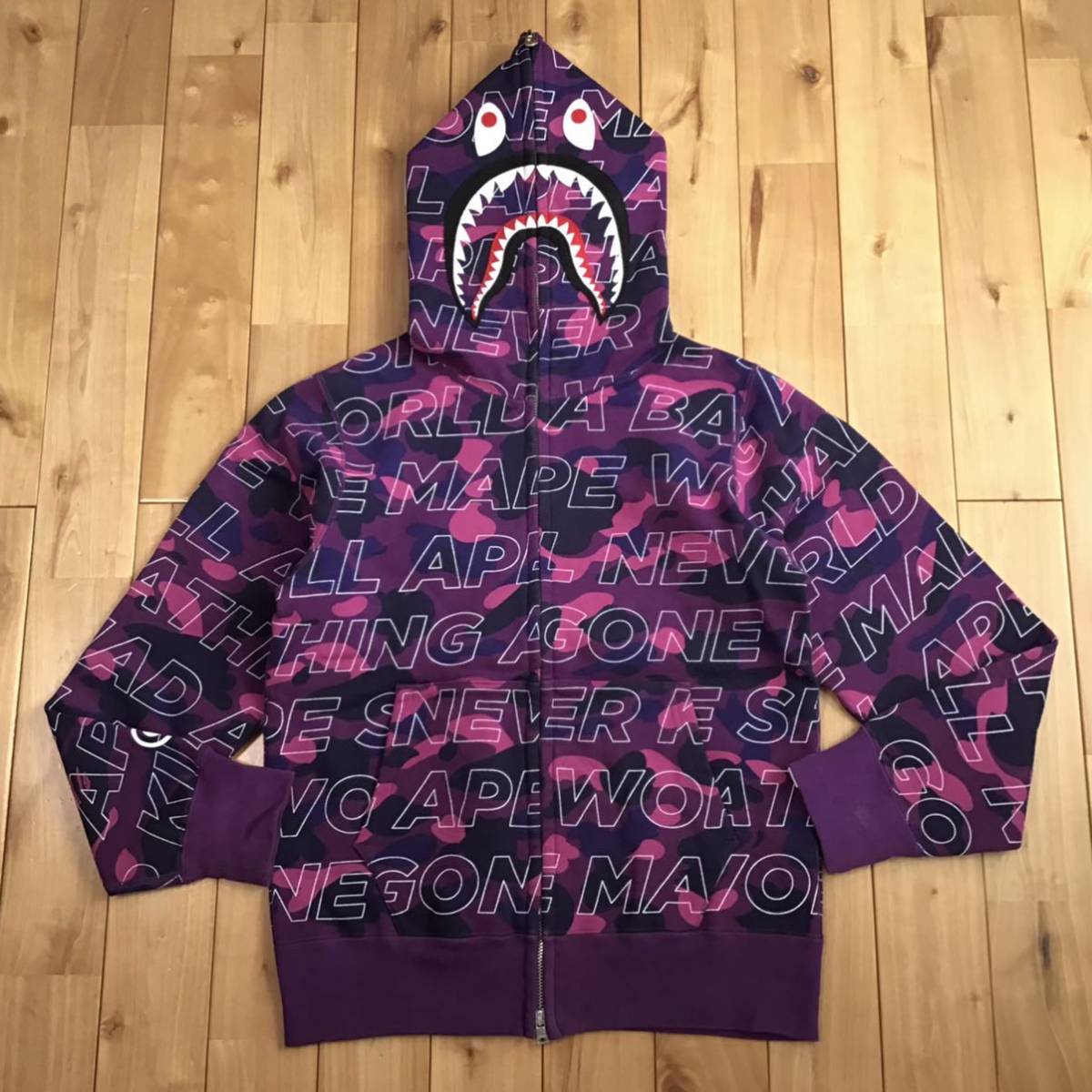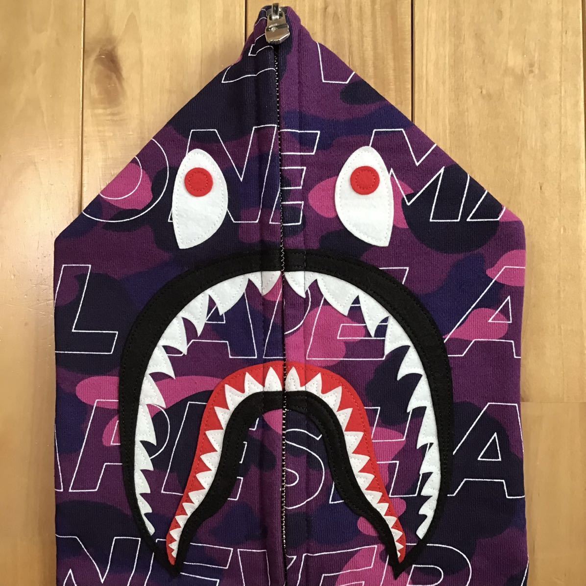 a bathing ape text color camo purple シャークパーカー Sサイズ です★