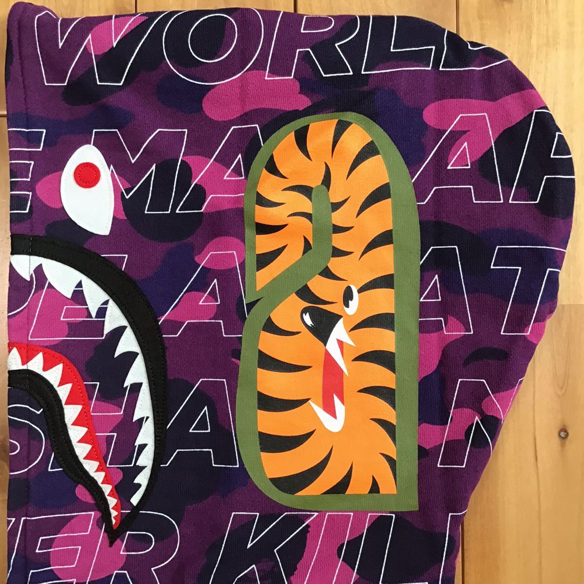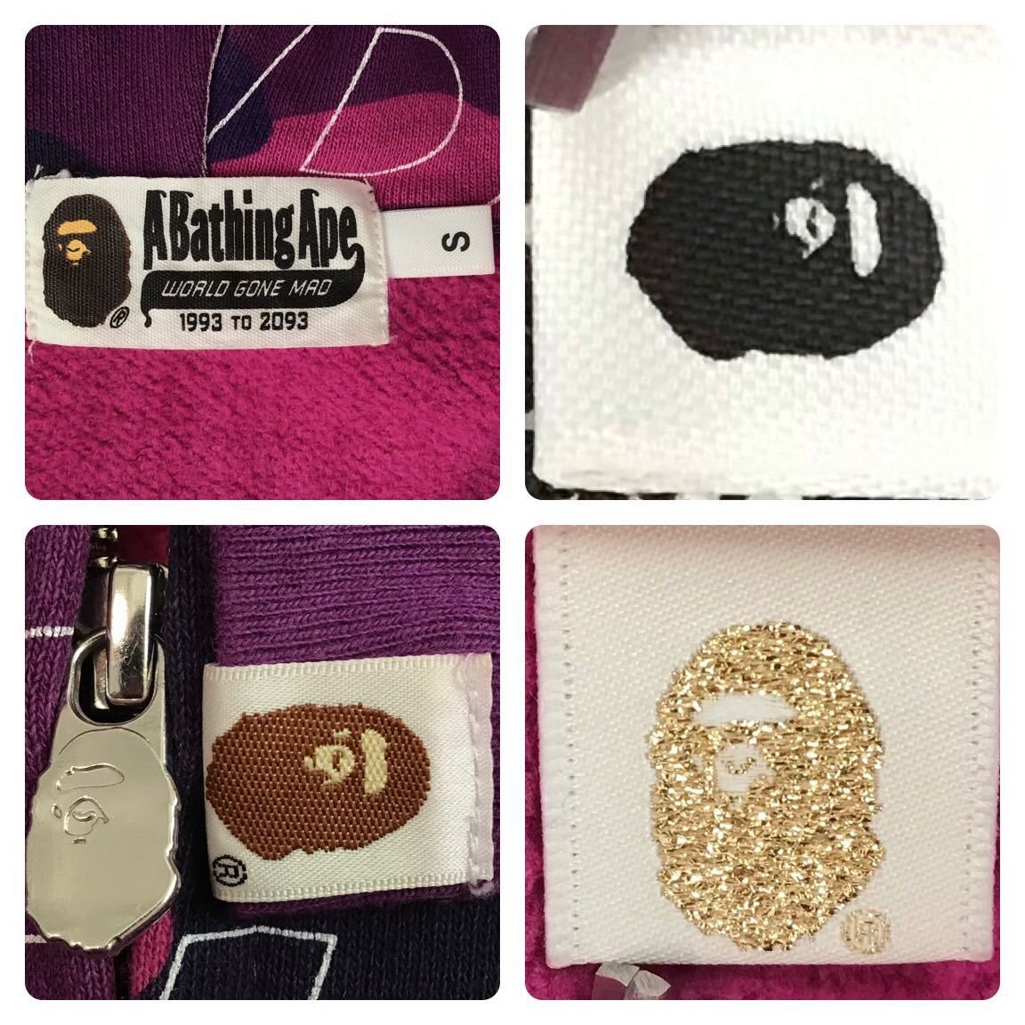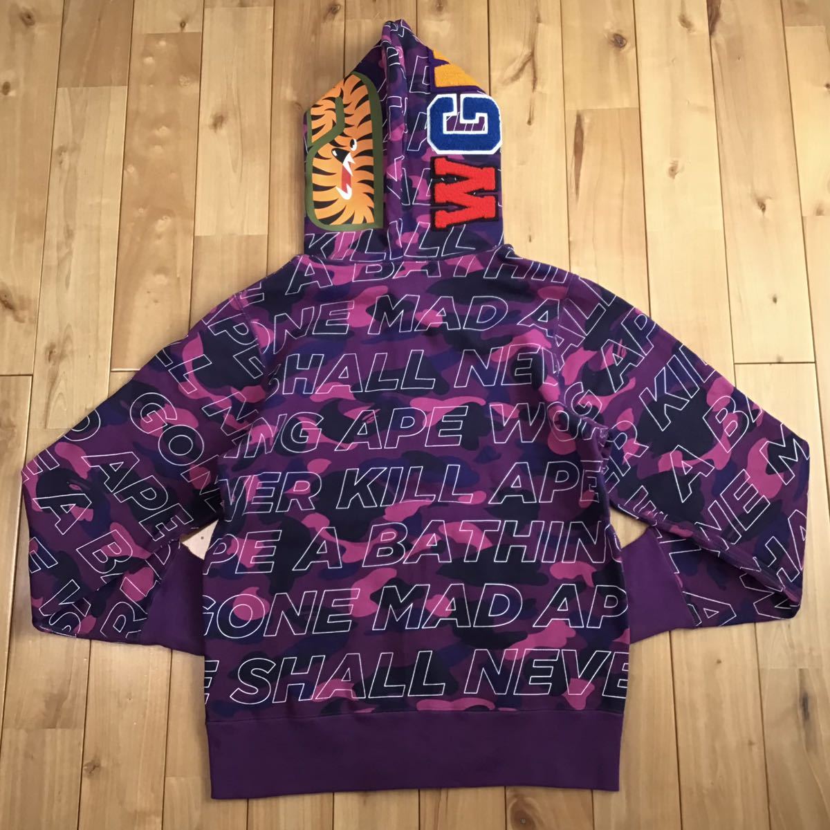 a bathing ape text color camo purple シャークパーカー Sサイズ です★