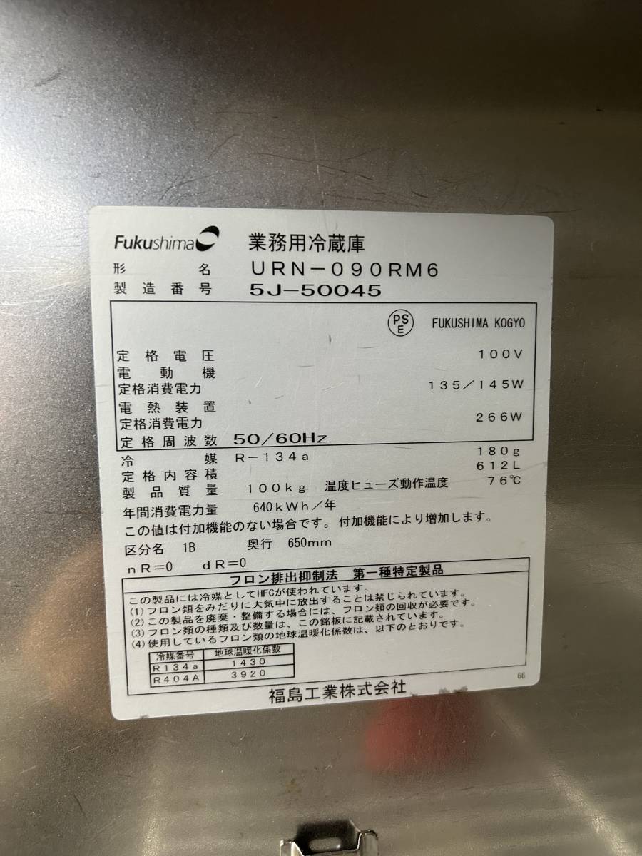 r231216-1 2015年式 福島工業 業務用冷蔵庫 UN-090RM6