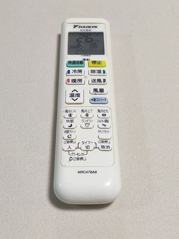 | kk1262 除菌・清掃済 DAIKIN/ダイキン エアコン用リモコン ARC478A8 赤外線発光確認済 返金保証あり | |