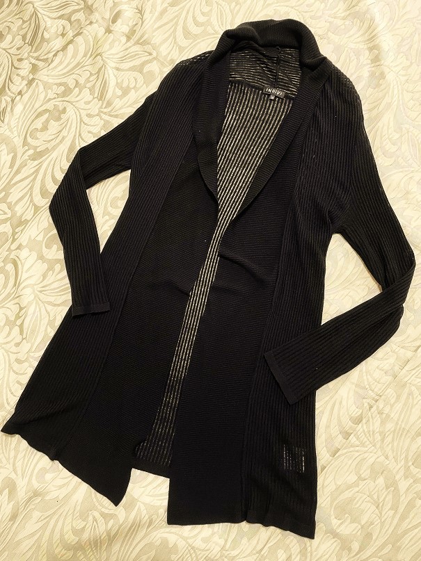 即落●【 INDIVI インディヴィ 】カーディガン ロングカーディガン 羽織 黒 ブラック M ワールド 日本製