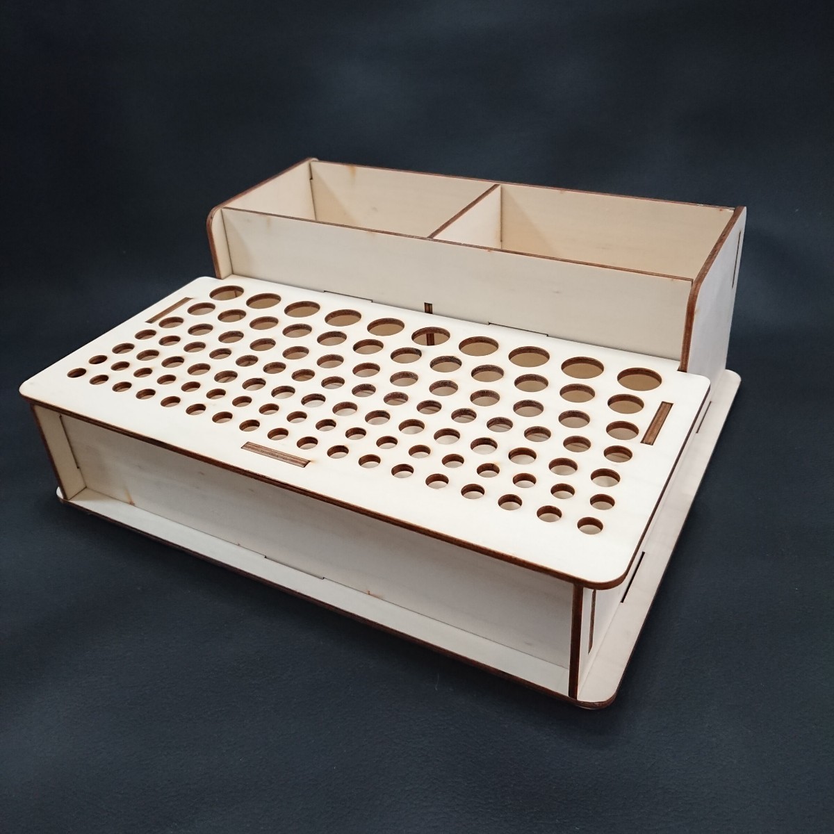 レザークラフト以外にも筆などの画材や粘土細工等、細長い形状のものを整理するのに大変便利です。