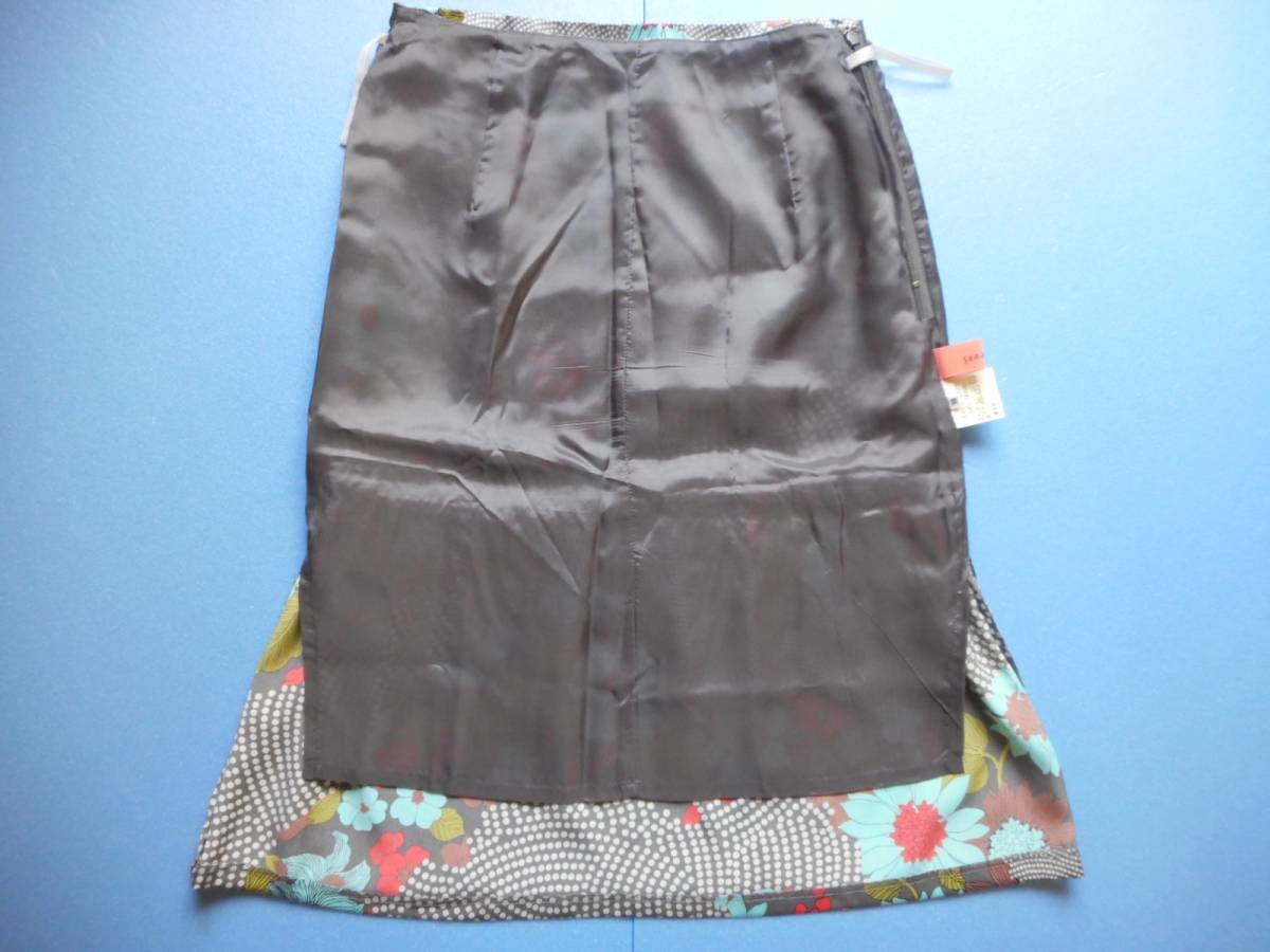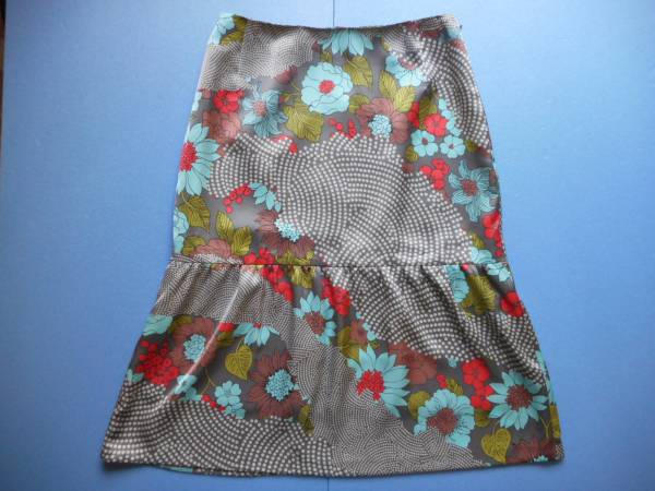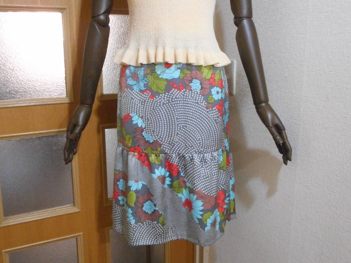 美品 プチ難有 スーナウーナ デザイン 春~秋 プリント スカート 38 Мサイズ位 花柄 グレー カラフル♪ 光沢