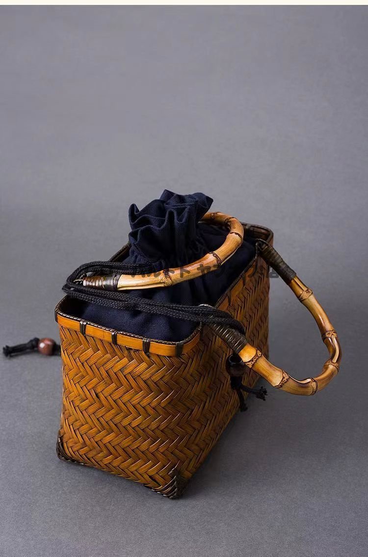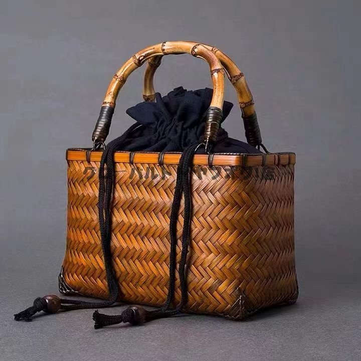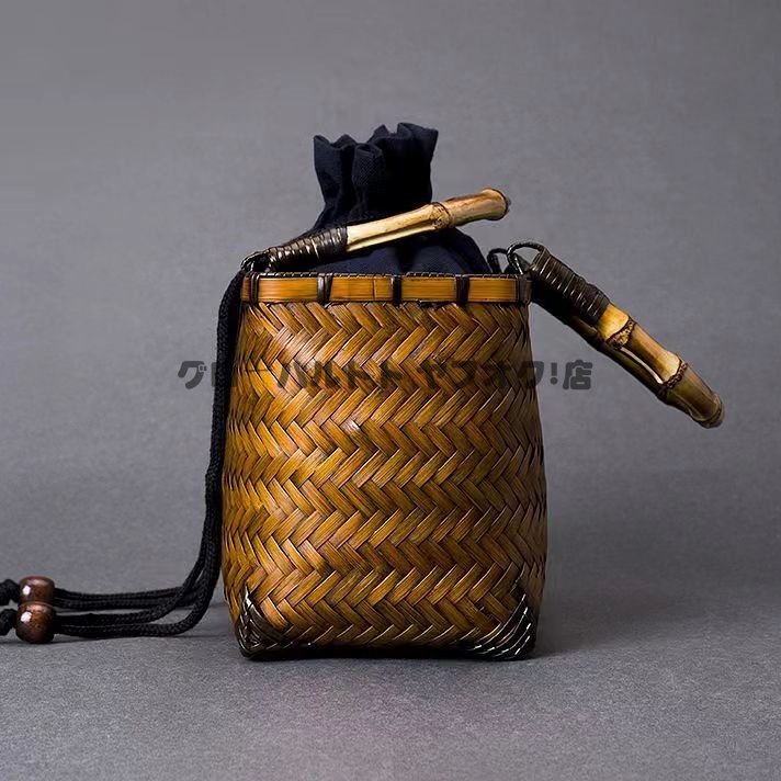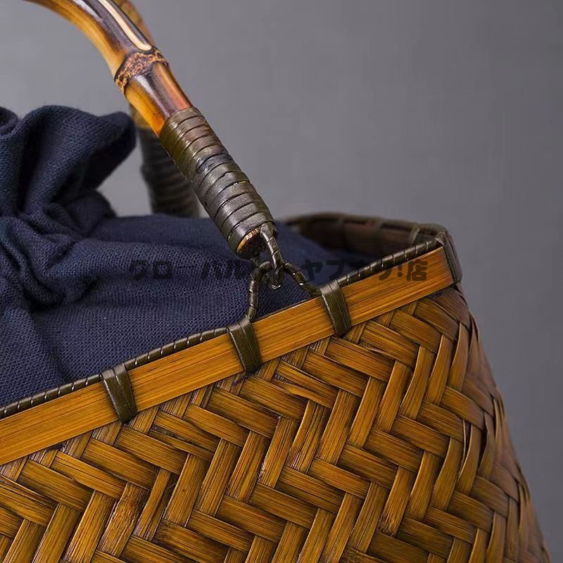 強くお勧め 竹バスケット 収納かご おしゃれ竹籠 編み 取っ手 持ち手  手作りトートバスケット S47