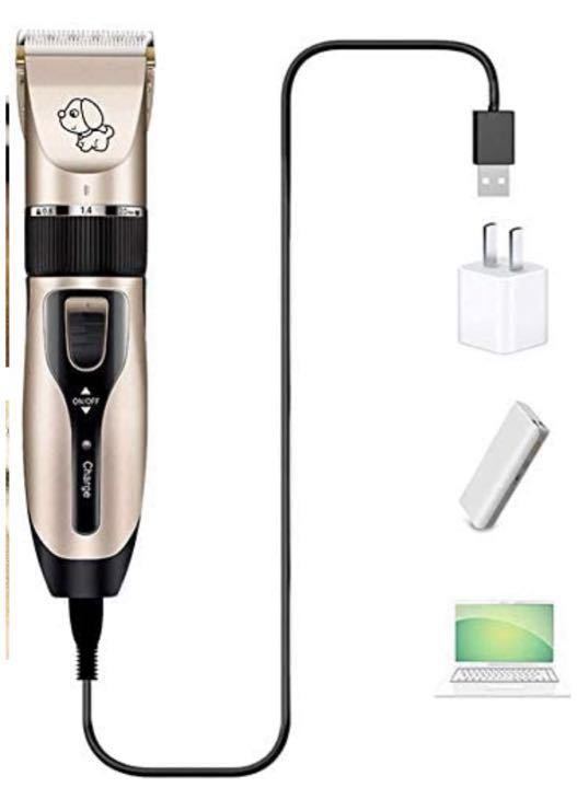 2.【コードレスデザイン】ヘアトリマーは軽量でコードレスなデザインで使いやすいです。ペットグルーミングキットには、USB充電ケーブルが付属しています。作業時間:約90分。ワイヤレスヘアトリマーを使用すると、電池やワイヤーの交換を心配する必要がなくなります。ただし、バリカンを使用して充電ワイヤーを接続して使用することもできます。