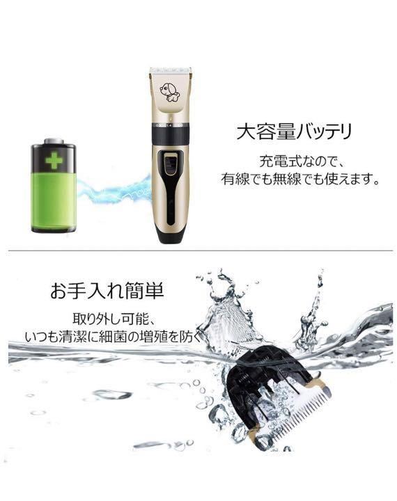 4.[低騒音]:ブレード密着技術と消音技術を採用され、リムーバブル刃と固定刃間の摩擦を減少しながらノイズを低減します。大きな騒音は出しませんから犬や猫を驚かせることがしません。静音・防水デザイン:精密な銅軸モーターを採用し、刃の摩擦を減らして本体は低振動・低騒音で、わずか50dBですので振動も少なく、ペットが怖がるの心配はありません。楽にグルーミングを実現します。防水機能により、乾いた毛も湿った毛をトリミングできます。
