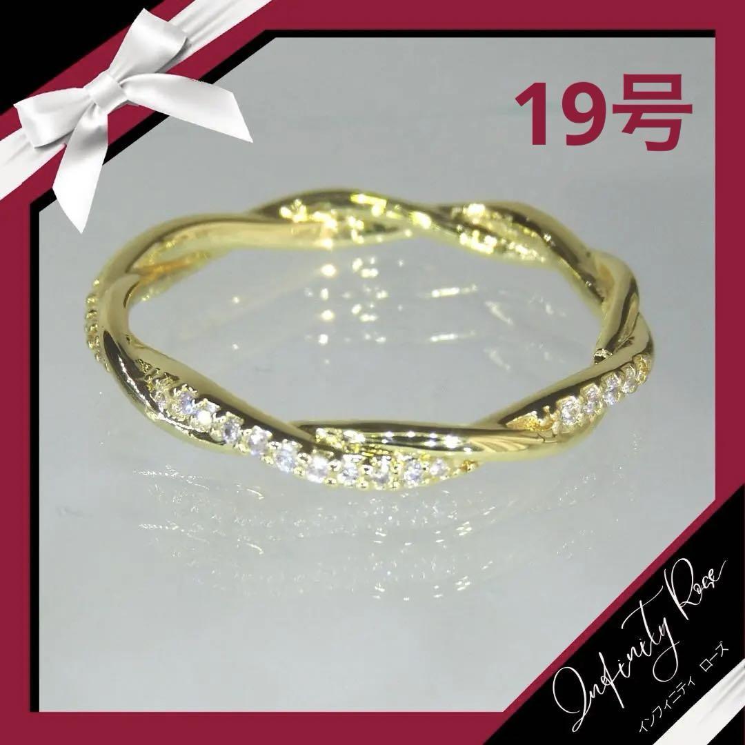 (R005G)19号 ゴールドツイスト可愛い繊細な細身ジルコニアリング 指輪