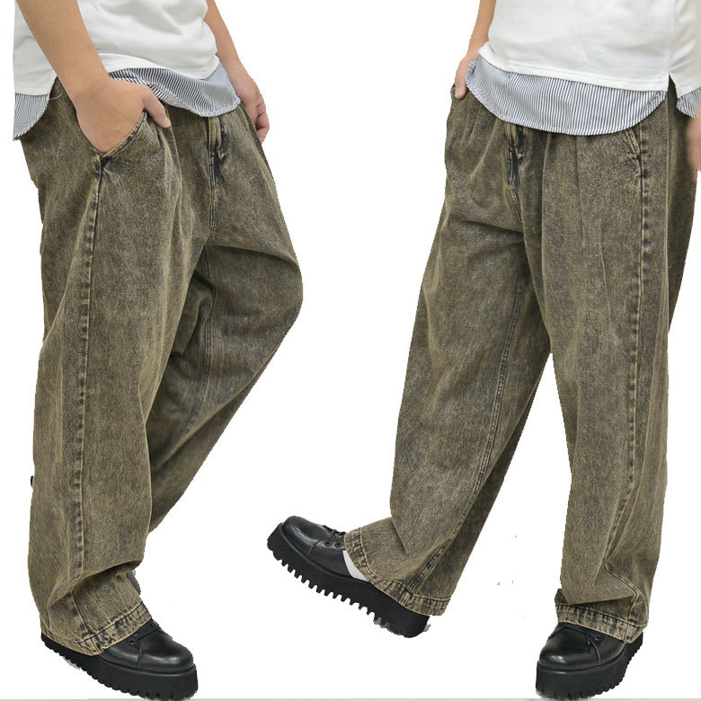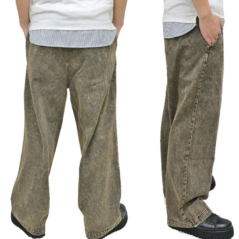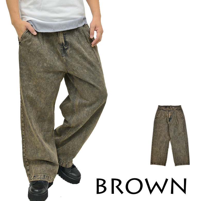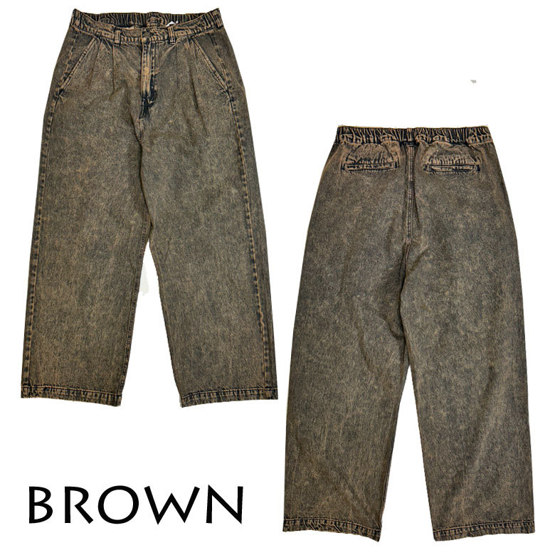 ワイド ジーンズ デニム カラーケミカル ワイド デニムパンツ 33-h364 新品ブラウン M