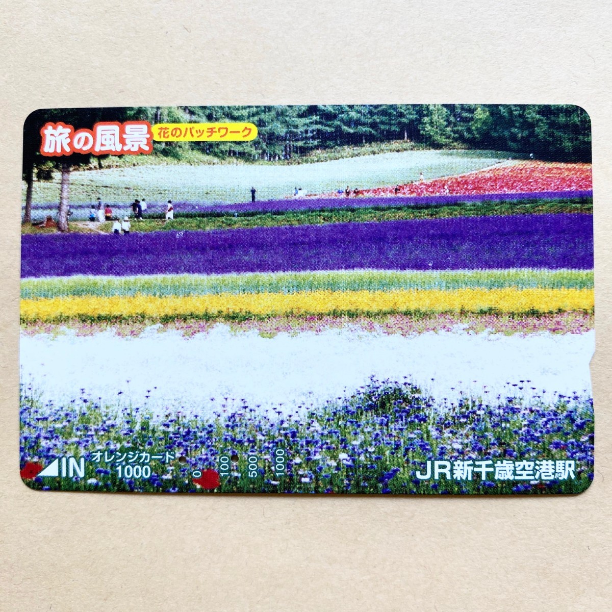 【使用済】 花オレンジカード JR北海道 旅の風景 花のパッチワーク