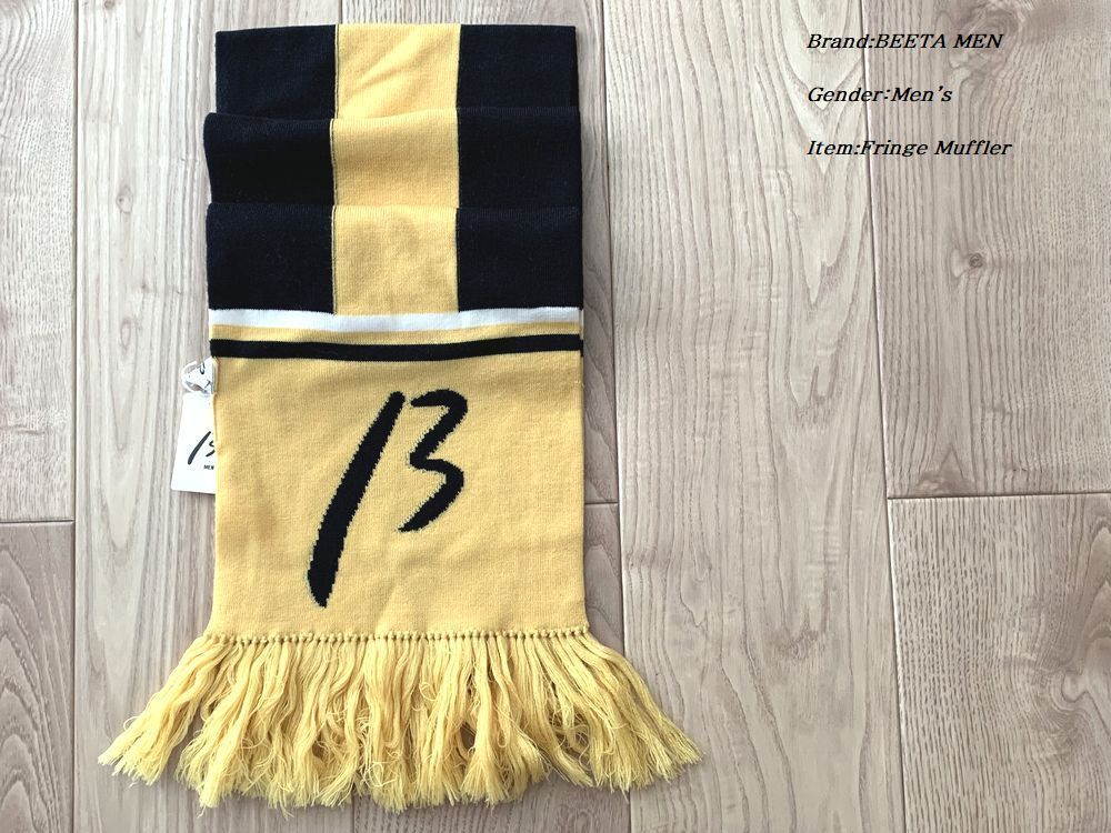 新品 未使用 定価2.5万 BEETA MEN ベータメン β MEN オールドスクール風 フリンジ マフラー 毛100% ネイビー