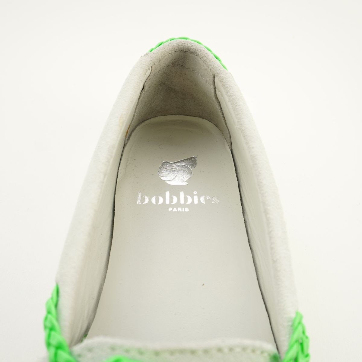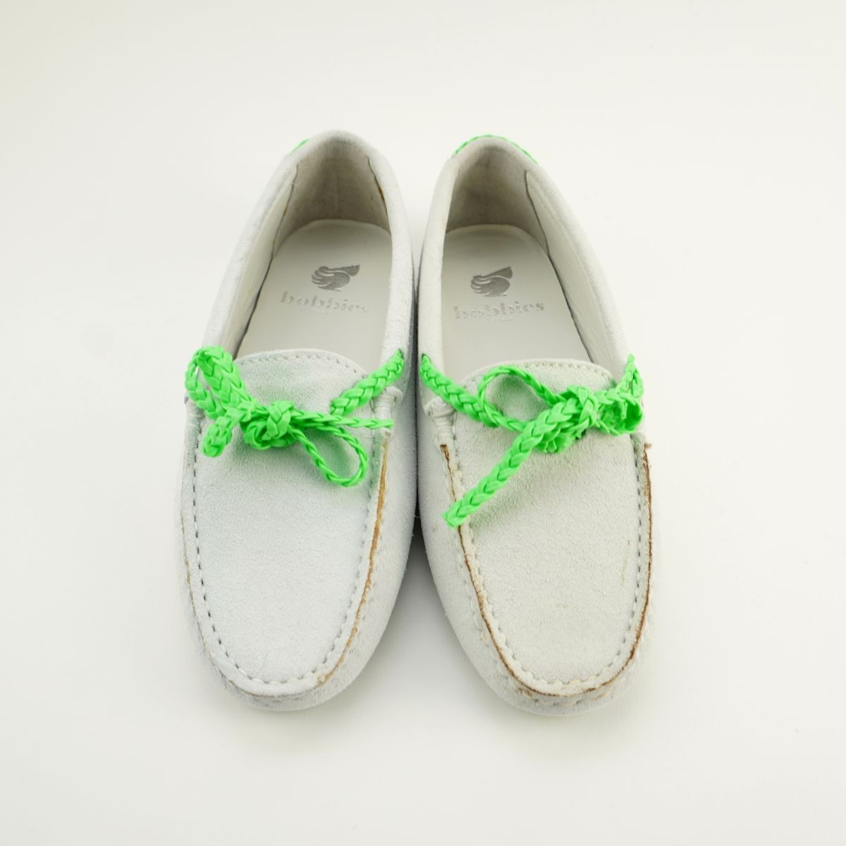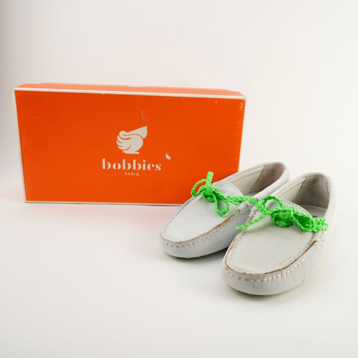 bobbies PARIS ボビーズ 36 23.0 モカシン ローファー リボン スエード 白 ホワイト 箱付き/KC88