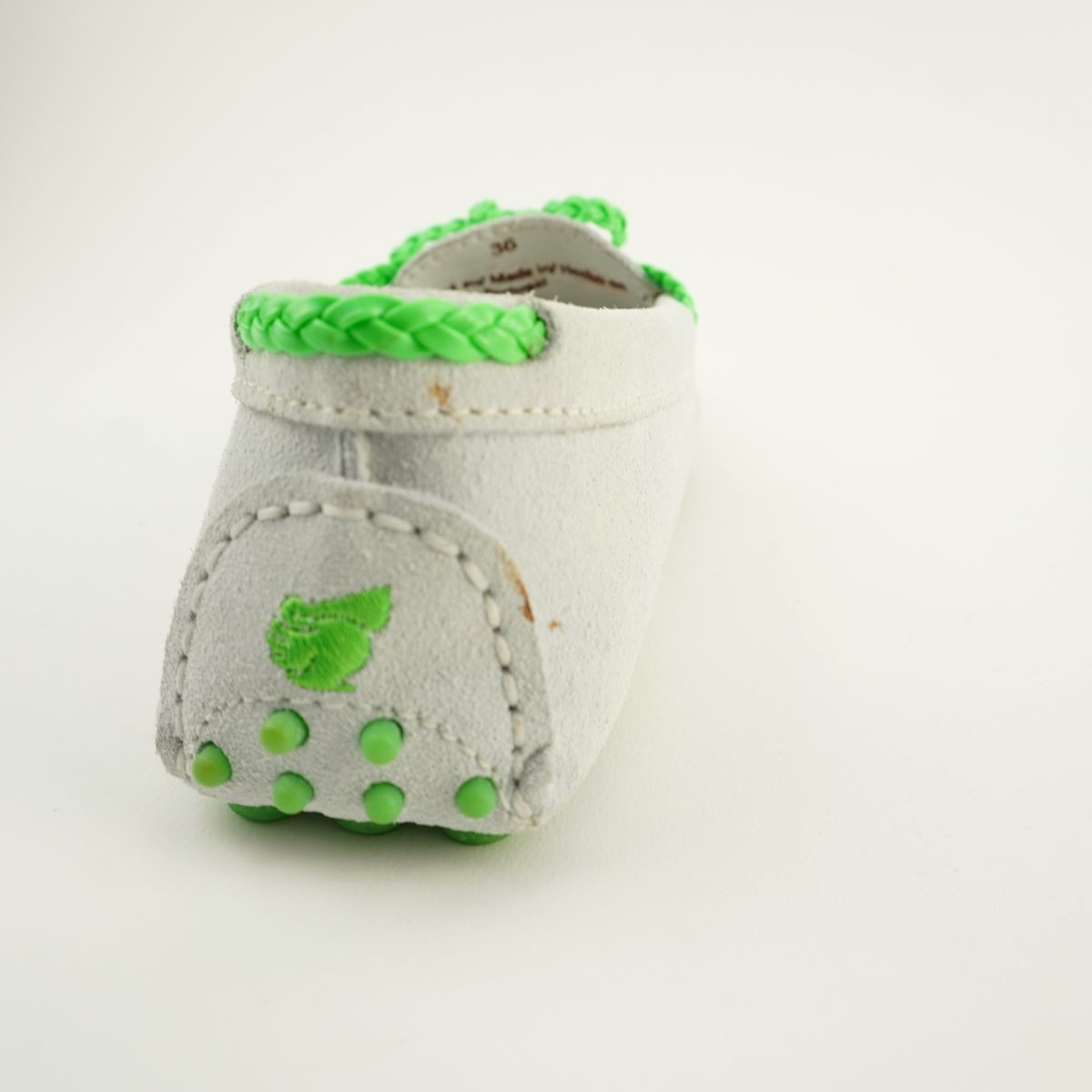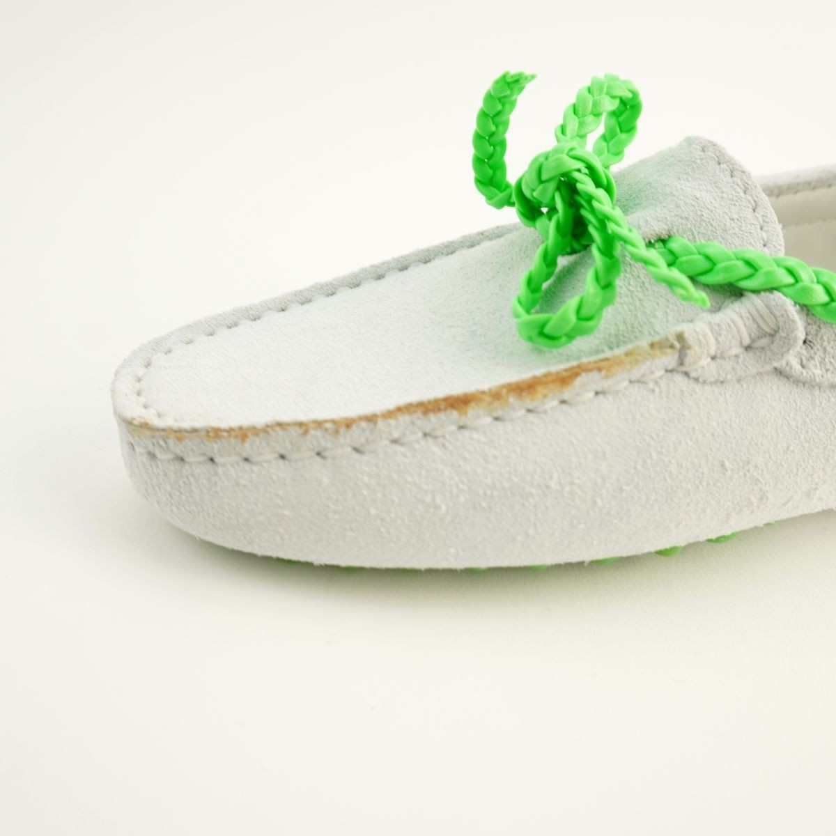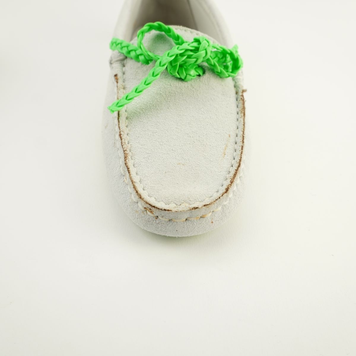 bobbies PARIS ボビーズ 36 23.0 モカシン ローファー リボン スエード 白 ホワイト 箱付き/KC88