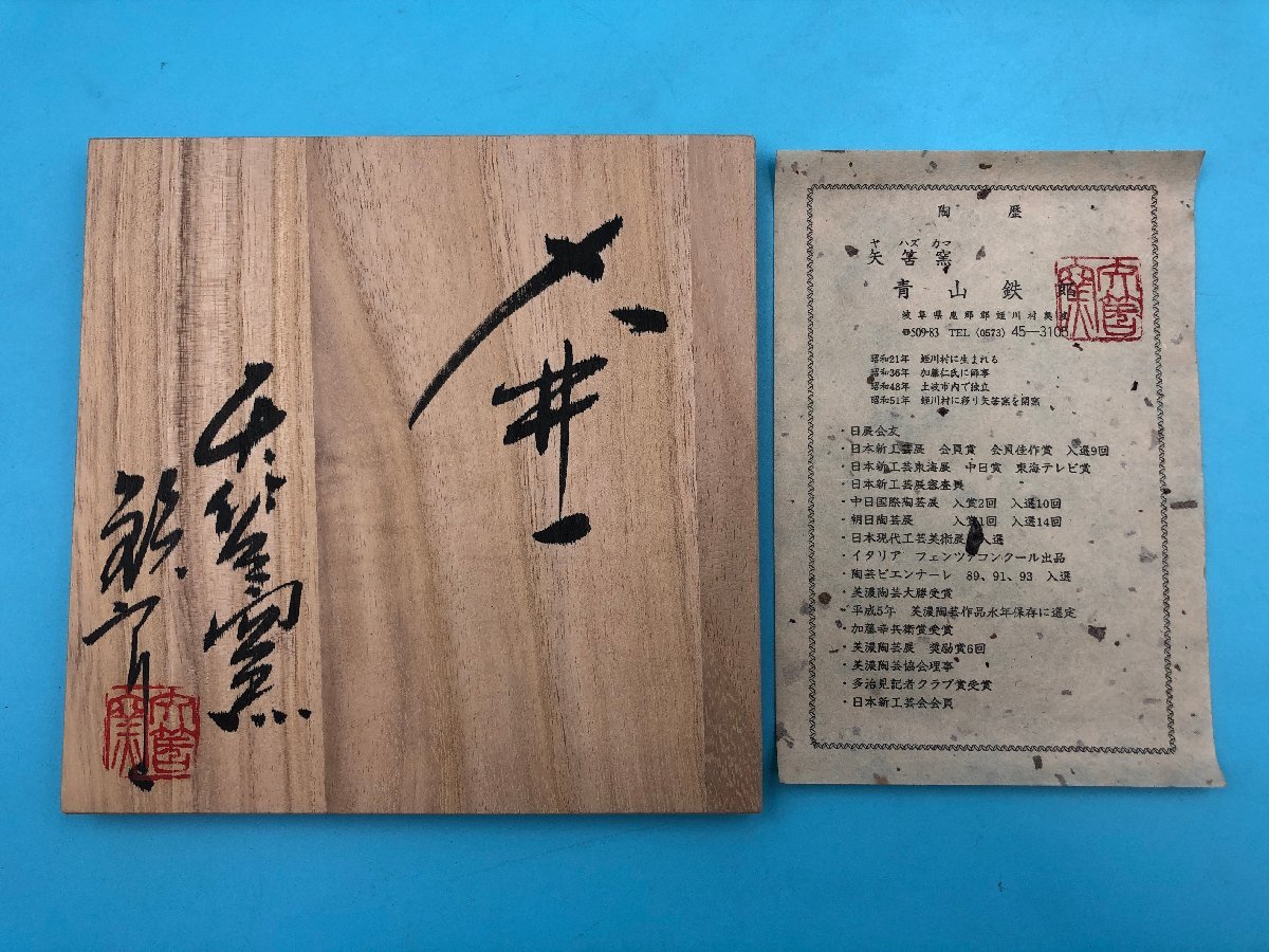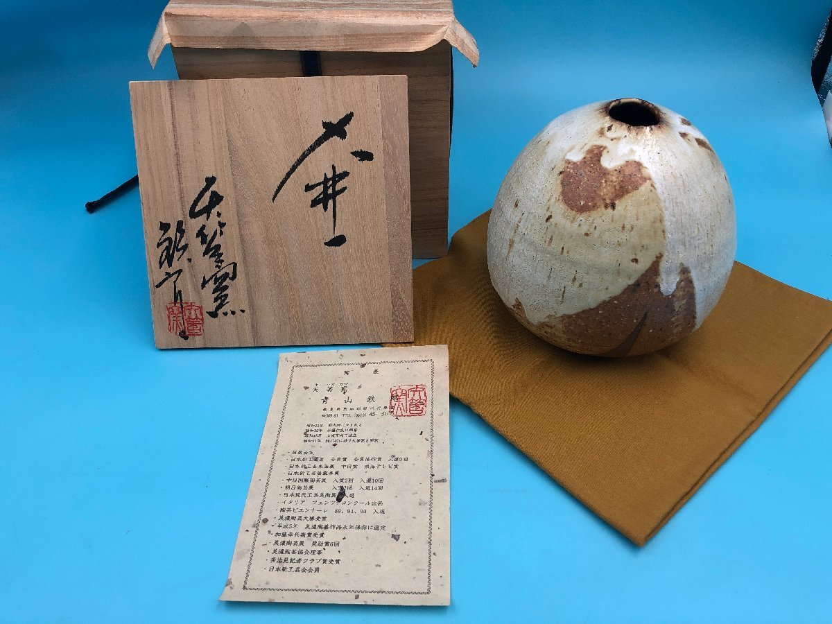 【A8952O175】美品 矢筈窯 青山鉄郎作 共箱 共布 栞付 花入れ 花瓶 花器 壺 壷 華道 茶道 床の間 インテリア