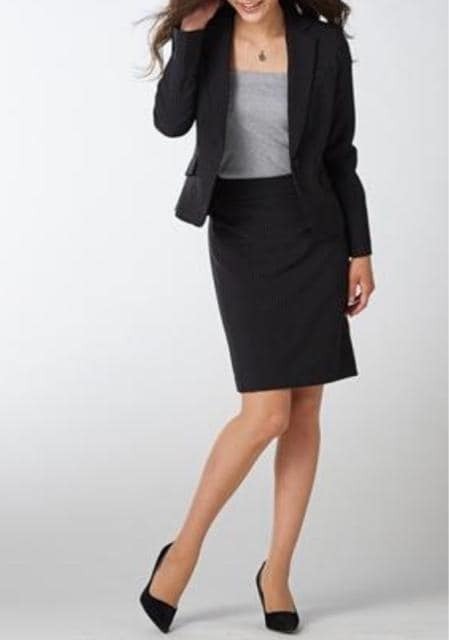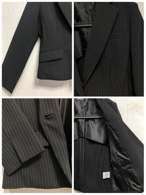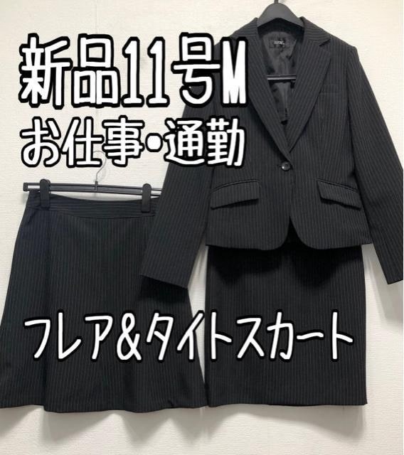 新品☆11号M♪黒系ストライプお仕事オフィスに2スカートスーツ☆u981