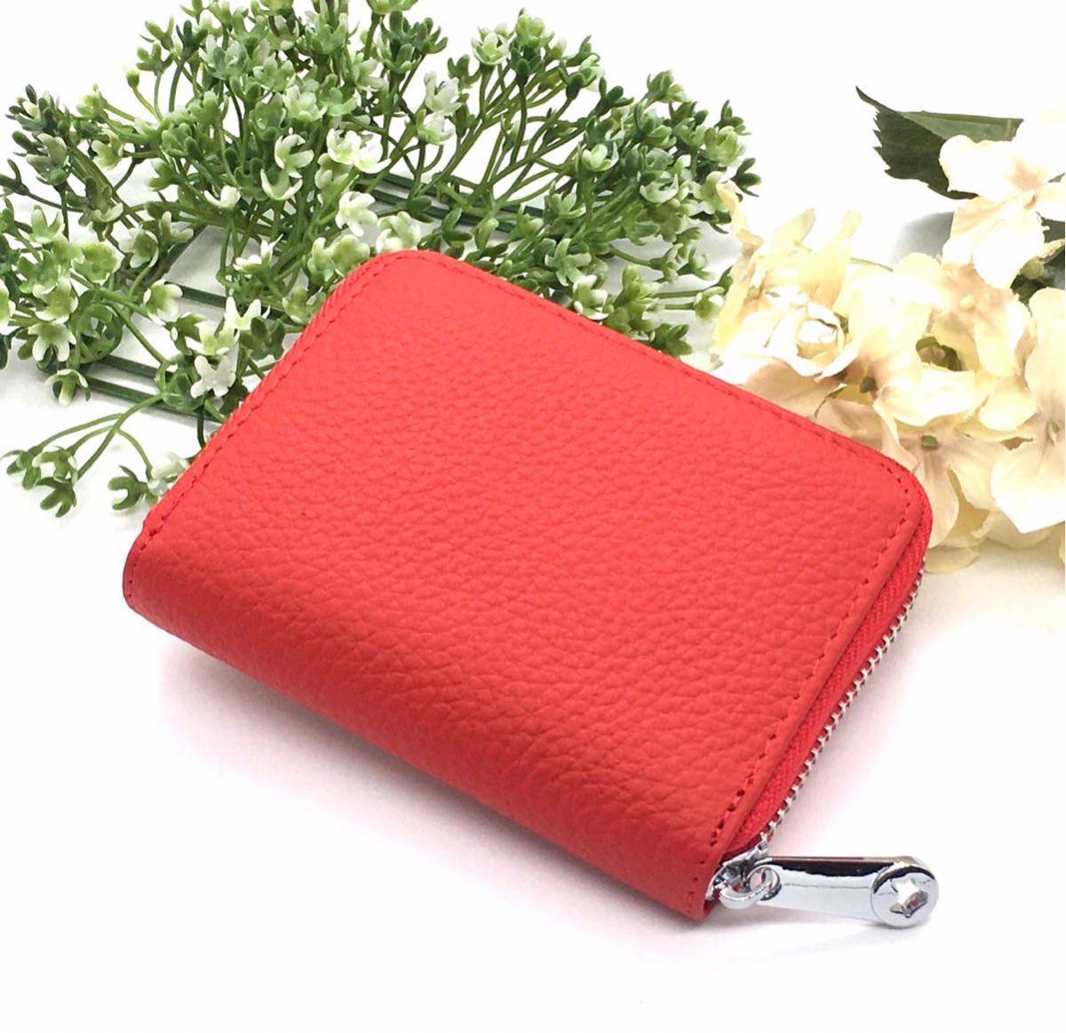 牛床革「レッド」手のひらサイズのミニウォレット★