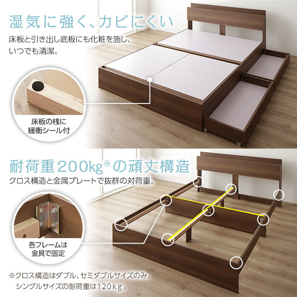 ※シングルサイズは床板4分割、セミダブル・ダブルサイズは床板8分割です。