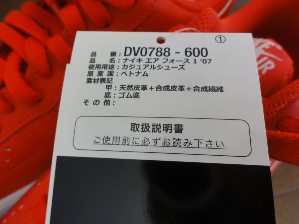 また発送方法はヤマト運輸となります。 ブランド:NIKE(ナイキ) 商品名:AIR FORCE 1´07 品番:DV0788-600 甲:天然皮革+合成皮革+合成繊維 底:ゴム底