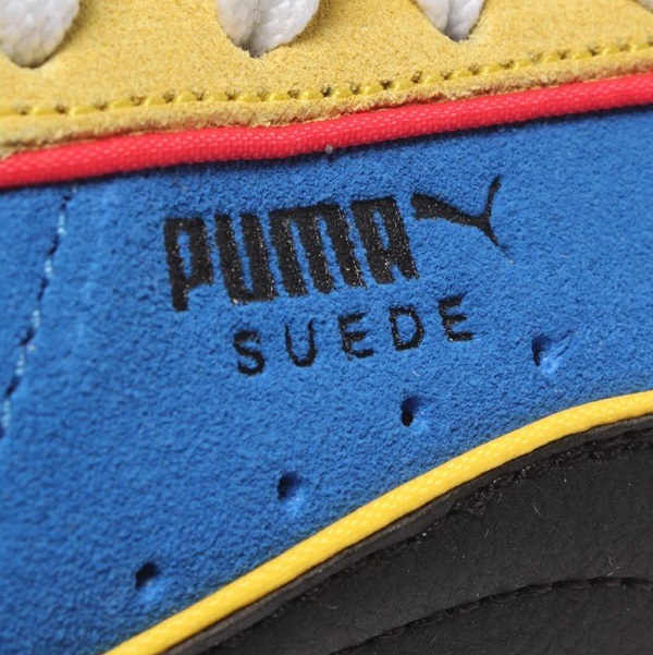 PUMAの定番スエードに大胆なカラーブロックが施されたアイテム。