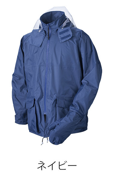 ◆製品機能・・・ 透明ビニールフード、前立て2重防水構造、逆流防止ポケット、高輝度反射テープ、W逆流防止背抜き、二重袖、収納式手カバー