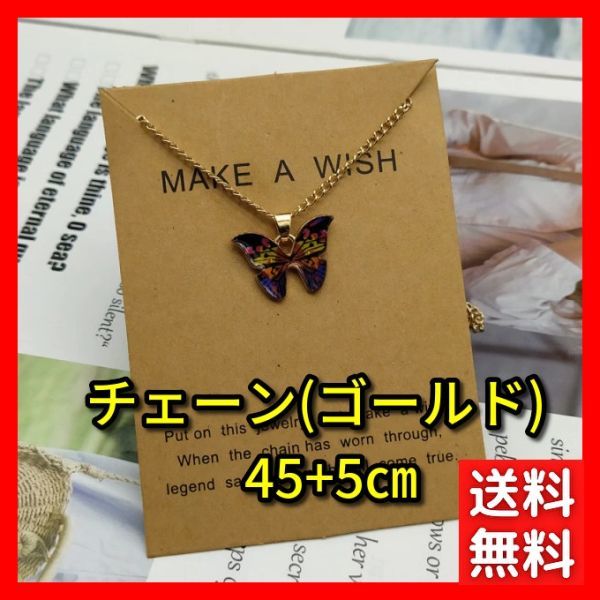 ネックレス ゴールド チェーン 蝶 バタフライ 紫 カラフル パープル レディース 韓国 ノーブランド ファッション ペンダント カラー レディース かわいい