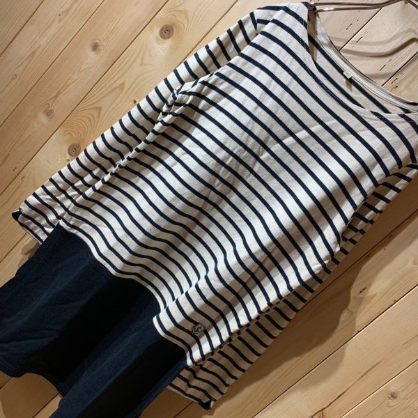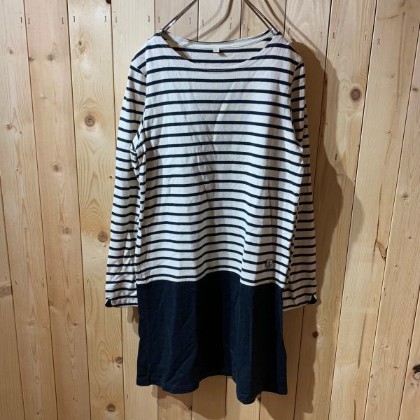 【KY253】長袖ロングTシャツ ネイビーボーダー レディース M ポス