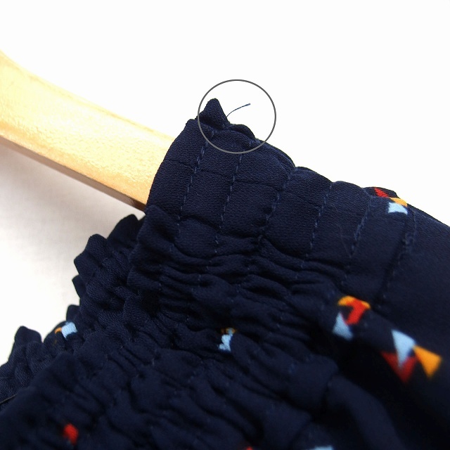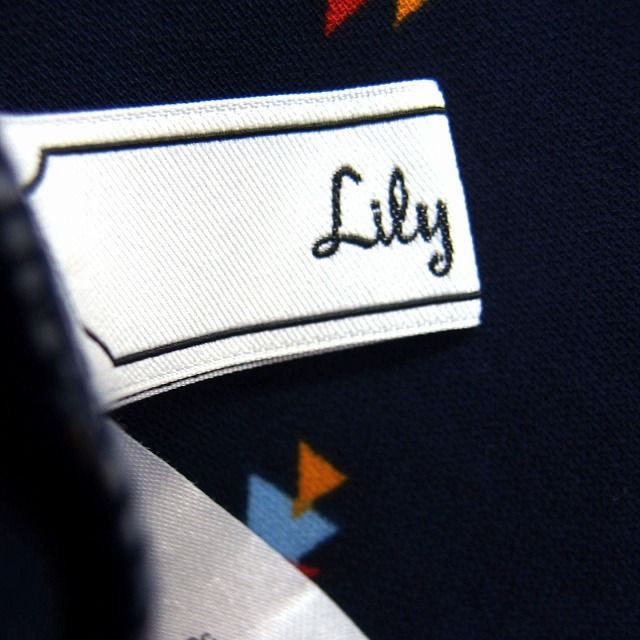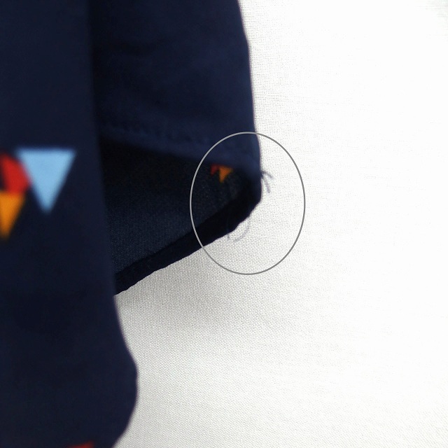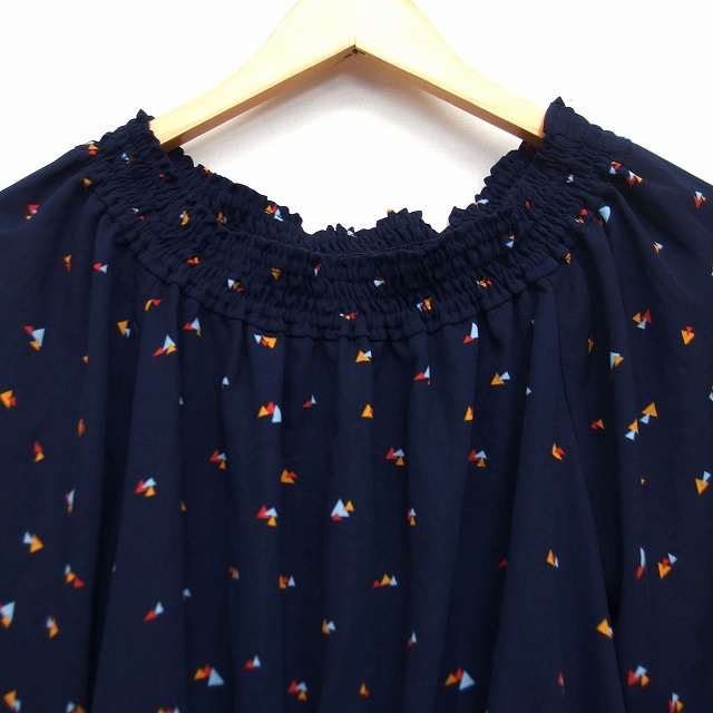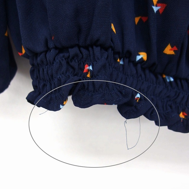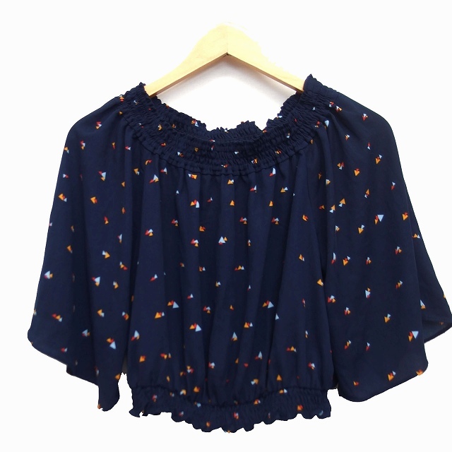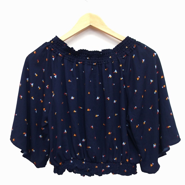 リリーブラウン Lily Brown カットソー ショート丈 総柄 三角 柄 七分袖 丸首 F ネイビー 紺 /HT16 レディース